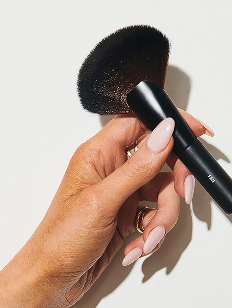The Fan Brush softly sculpts and contours the face for a natural-looking bronzer application. This brush features a slightly shorter handle for easier application, and enhanced bristle quality for a perfectly soft, bronzed glow.
