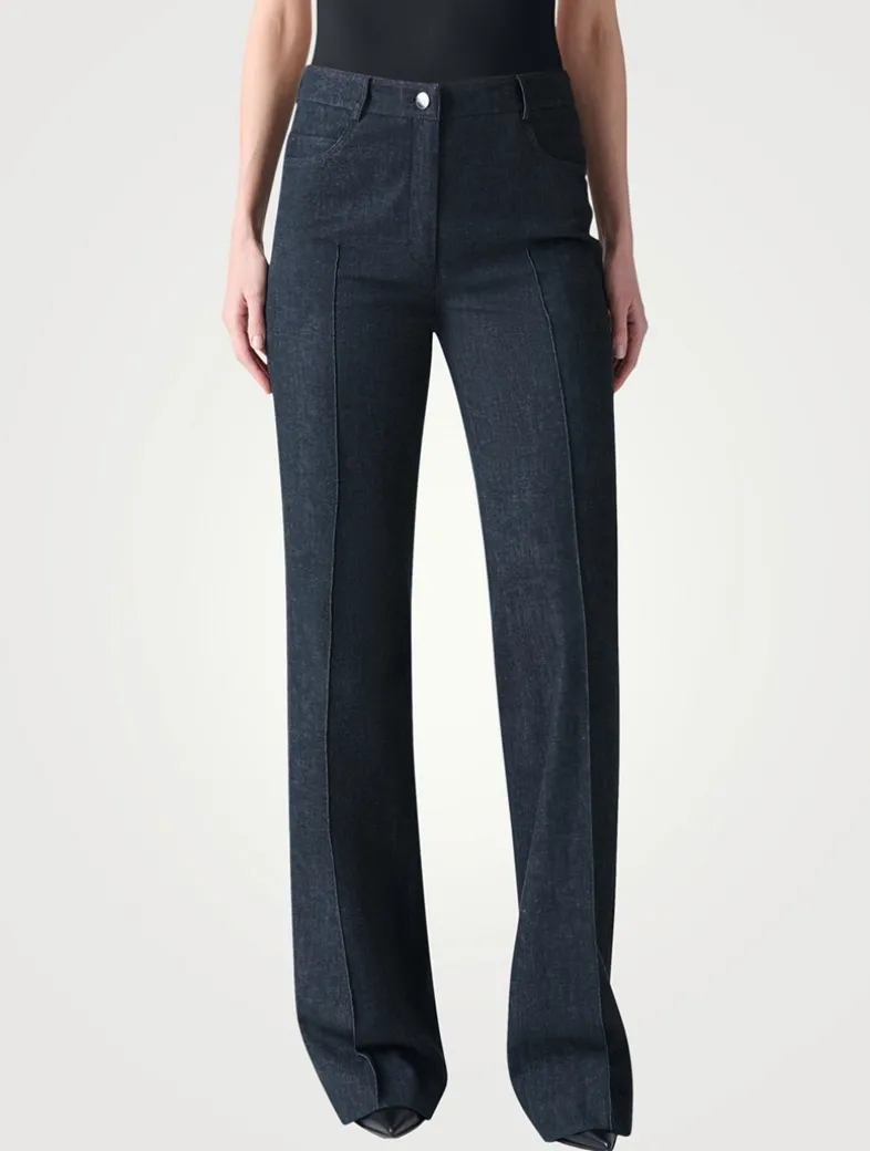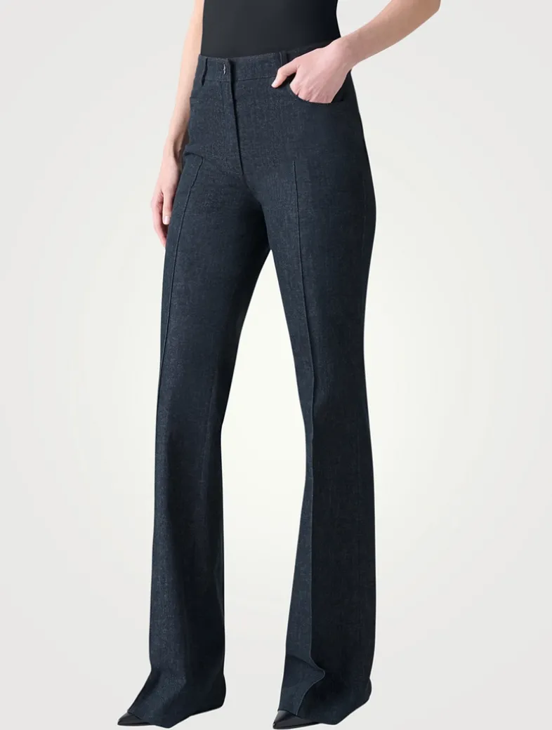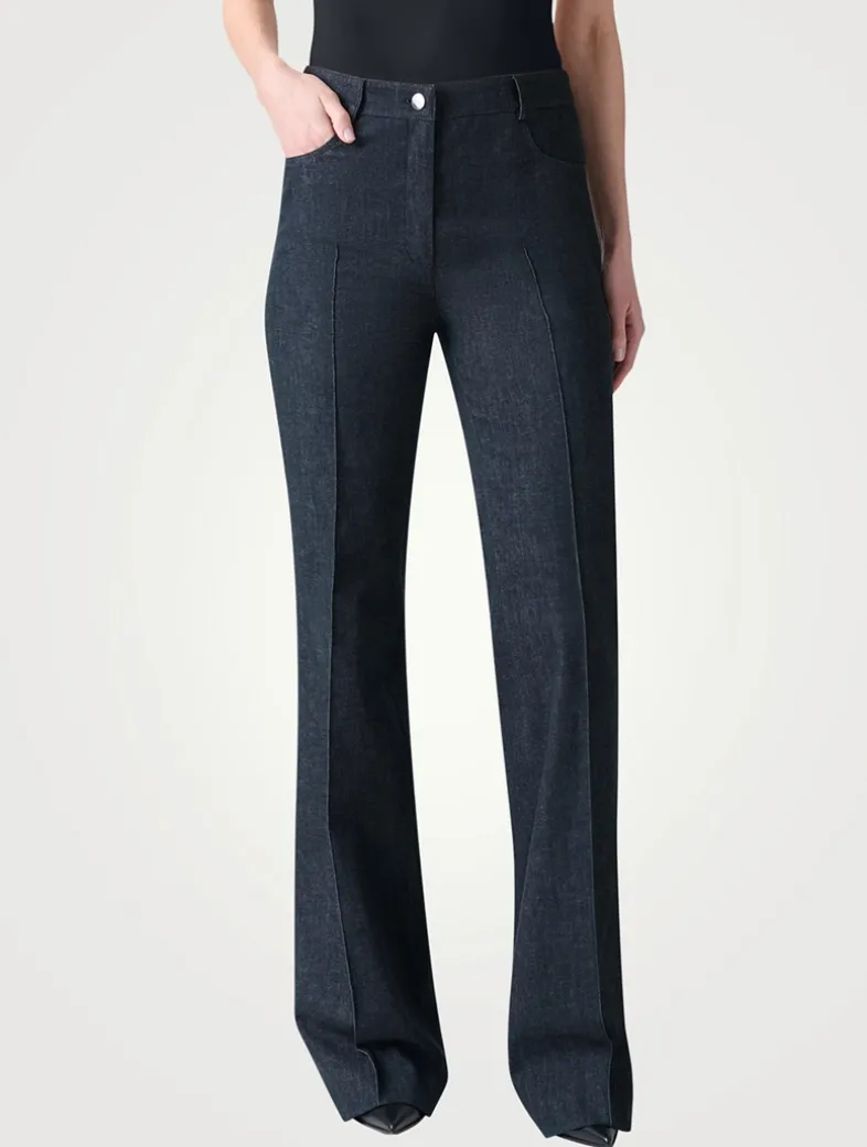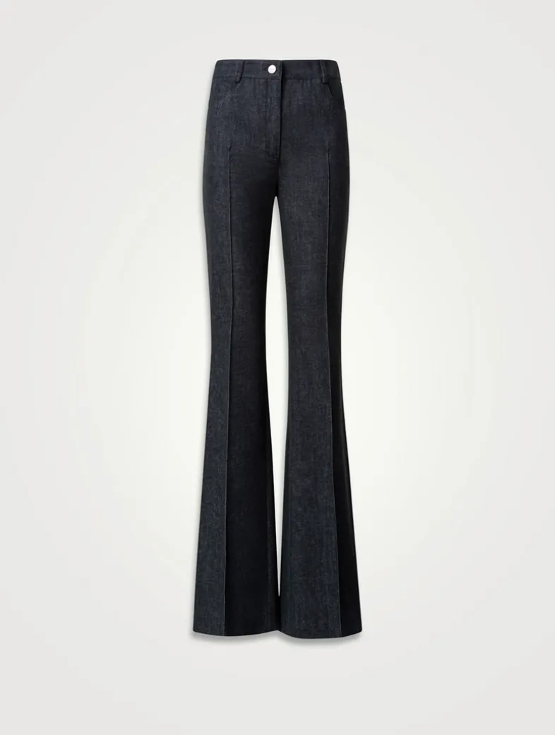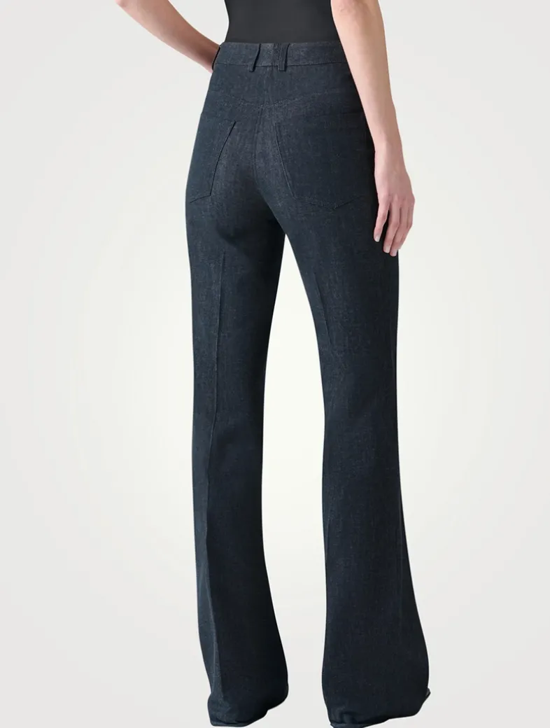 The Farid jeans are crafted in stretch cotton for everyday wear, comfort, and versatility. They fit slim through the hips and thighs before falling to flared hems for an elongating look. Completing the classic denim styling, they feature a front closure and five pockets.