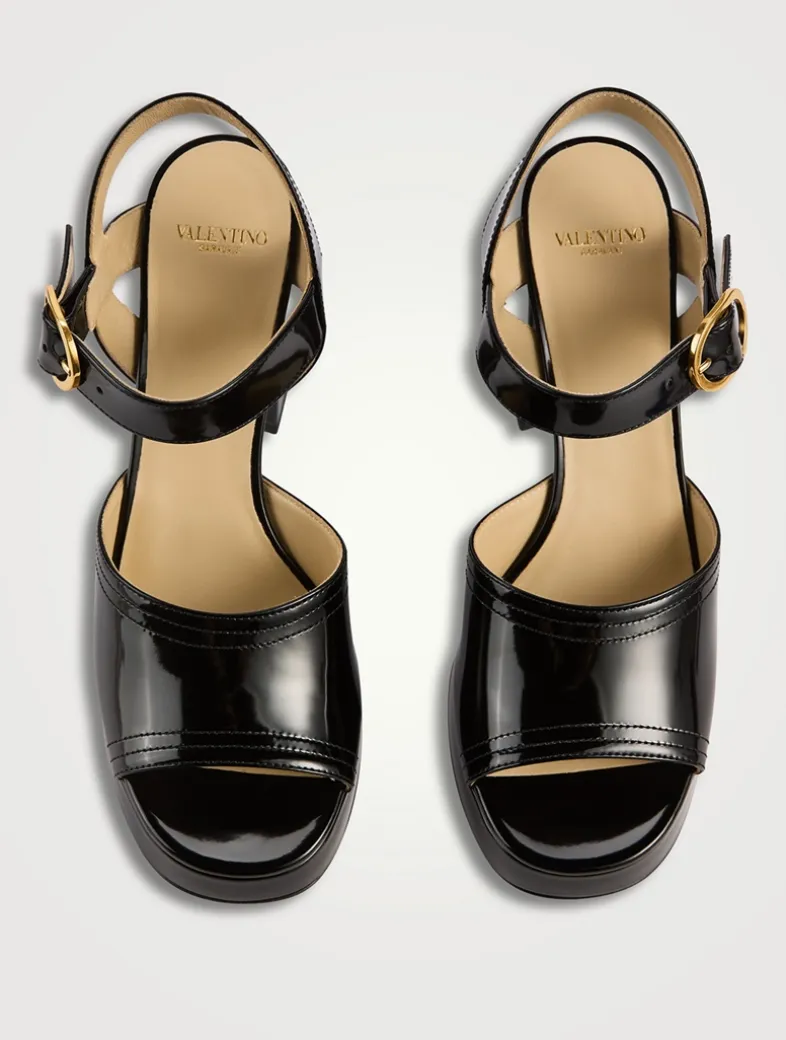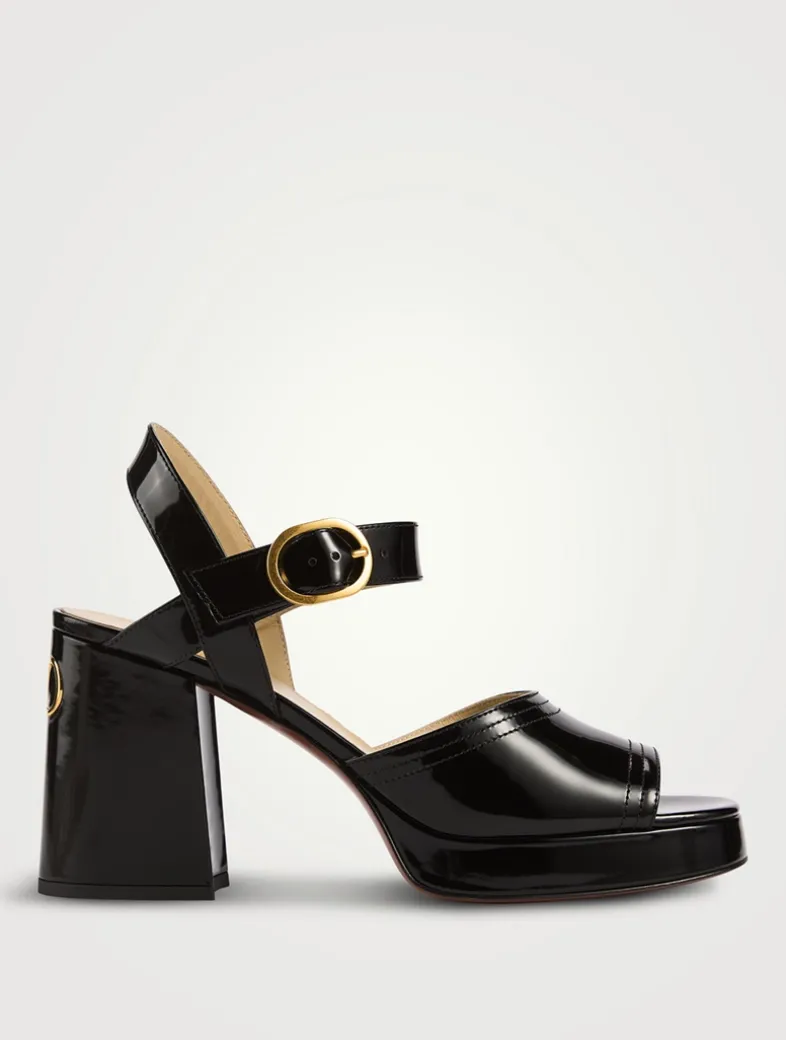 Flaunting a vintage-inspired look, these leather sandals have a covered platform and are set on a covered block heel. Embellished with a VLogo Signature detail with antique brass-effect finish.