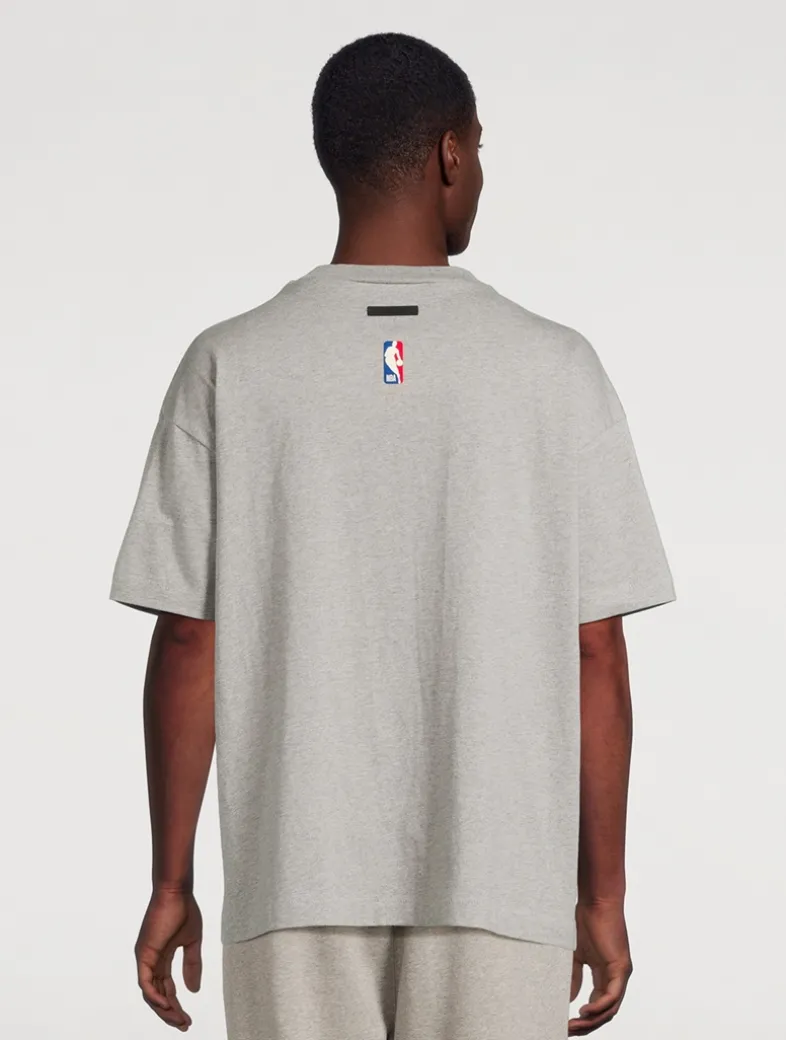 Part of the collaboration between Fear of God Essentials and the NBA, this short-sleeve tee is designed with a relaxed fit in the body with dropped shoulders and a rib-knit crewneck. Crafted from core cotton jersey, the tee features a rubberized soft-touch