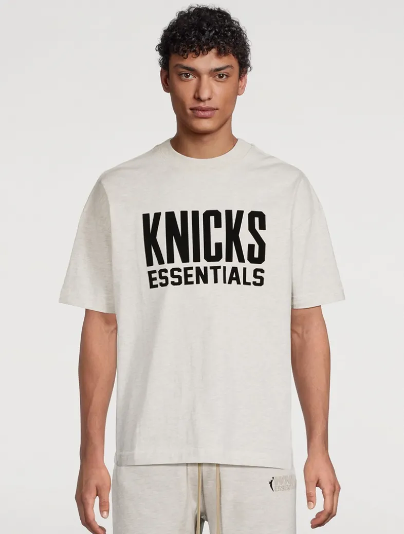 Part of the collaboration between Fear of God Essentials and the NBA, this short-sleeve tee is designed with a relaxed fit in the body with dropped shoulders and a rib-knit crewneck. Crafted from core cotton jersey, the tee features a rubberized soft-touch