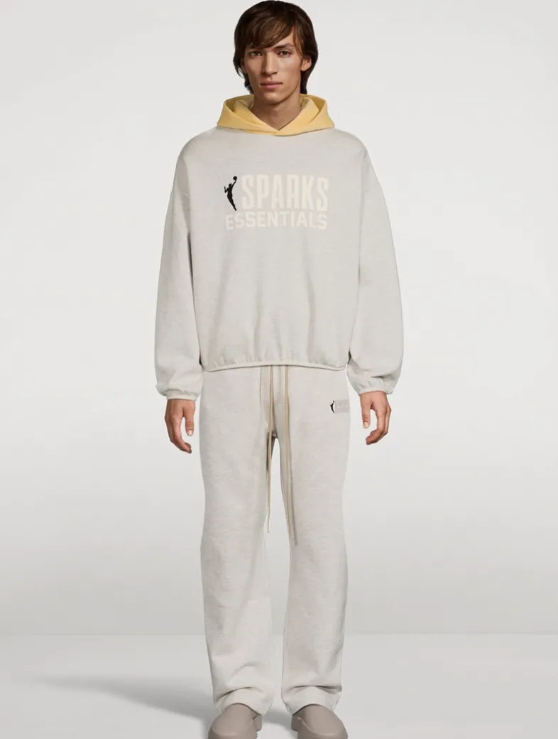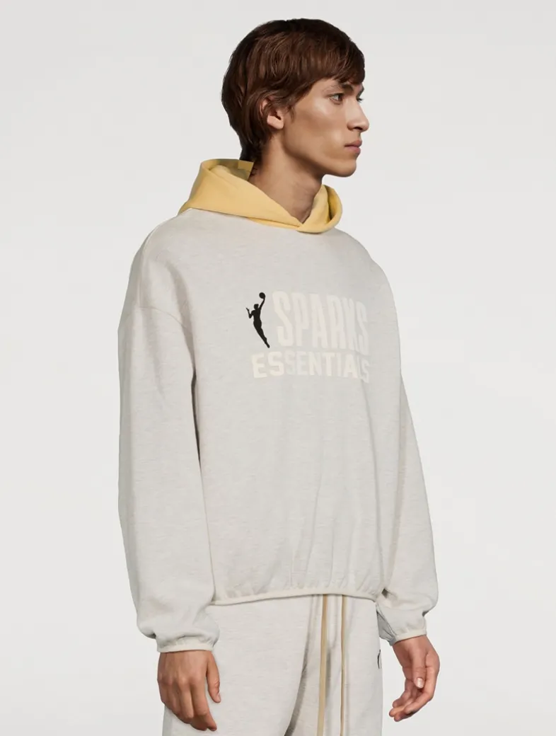 Part of the collaboration between Fear of God Essentials and the NBA/WNBA, this hooded sweatshirt is constructed from core fleece and boasts a voluminous, cropped silhouette. Detailed with a contrasting double-layered hood, side seam pockets, and elastic bindings at the cuffs and waist hem, the pullover style features a rubberized soft-touch WNBA logo alongside the