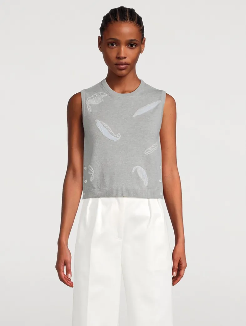The perfect top for transitional dressing is knit from cashmere. Its woven feathers symbolize bird migration patterns, seasonal shifts, and new beginnings.