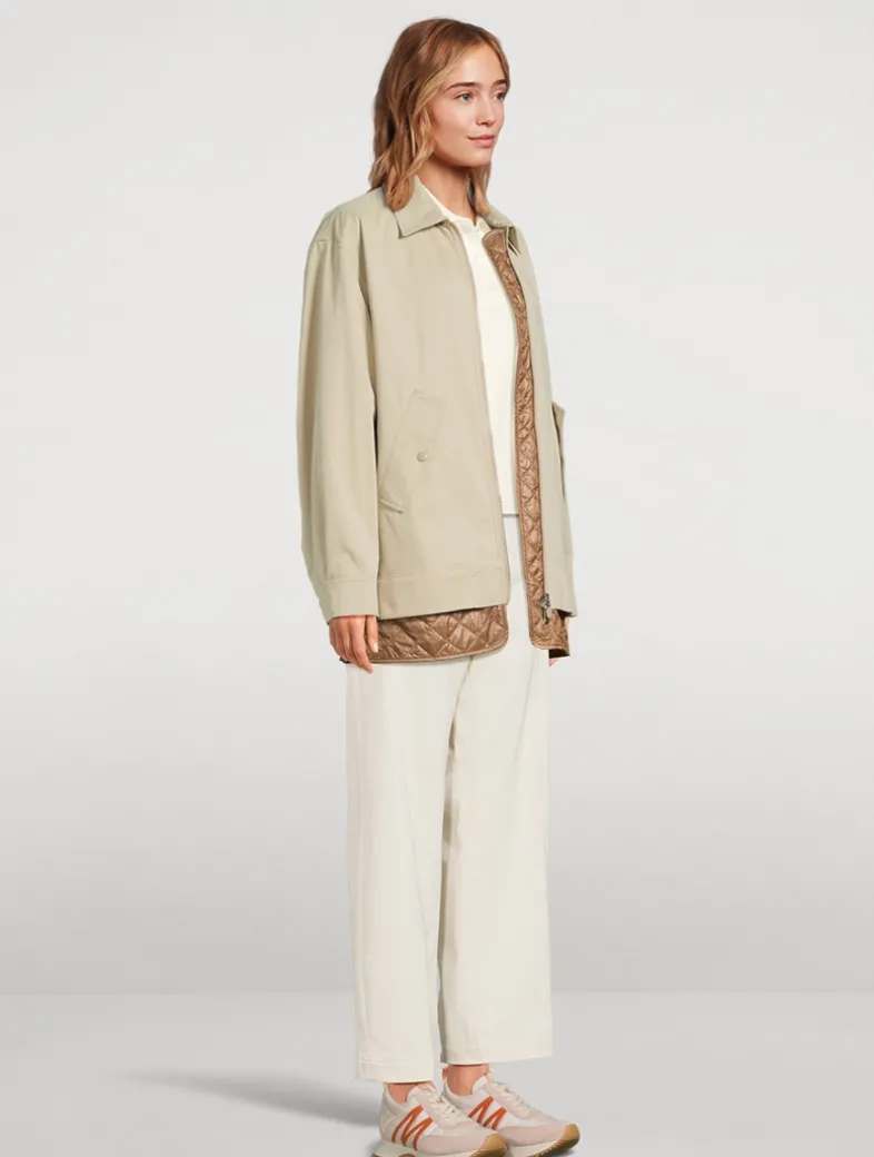 Made from a cotton-blend canvas, this field jacket is highlighted with quilted nylon padding at the placket and hem to enhance its utilitarian appeal. A pocket at the sleeve and a pair at the waist complete the look.