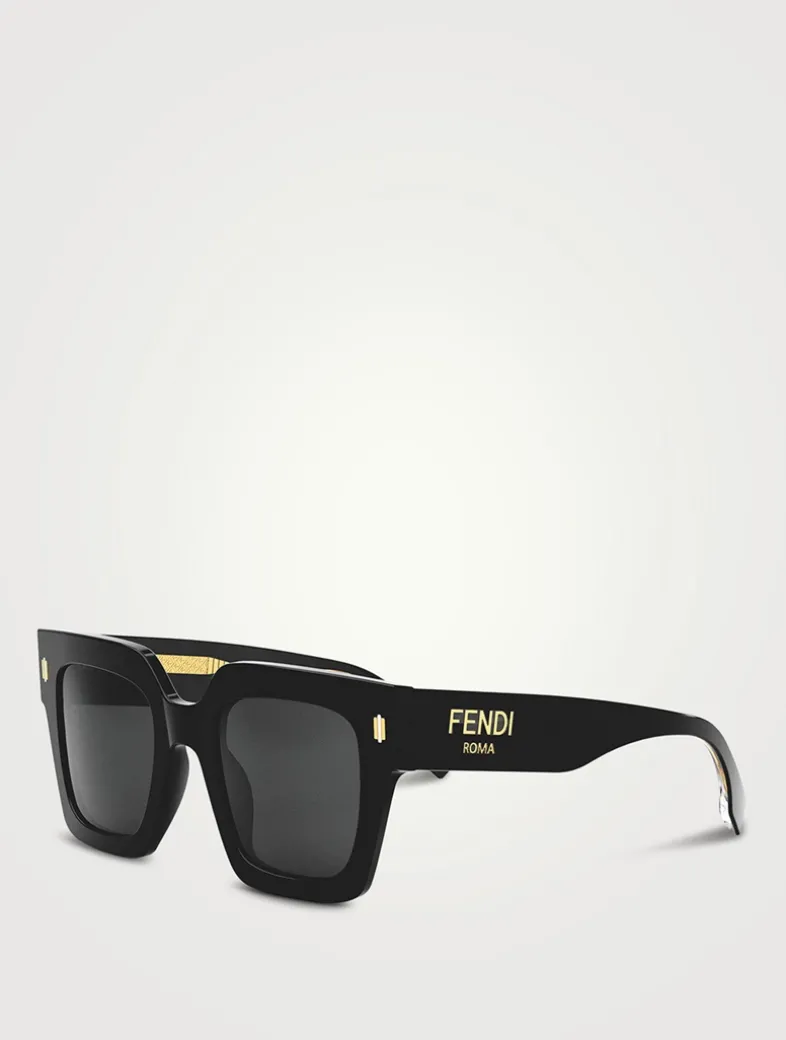 Made in Italy from glossy acetate, these oversized square FENDI Roma sunglasses feature temples with visible metal core with laser etched FF motifs.