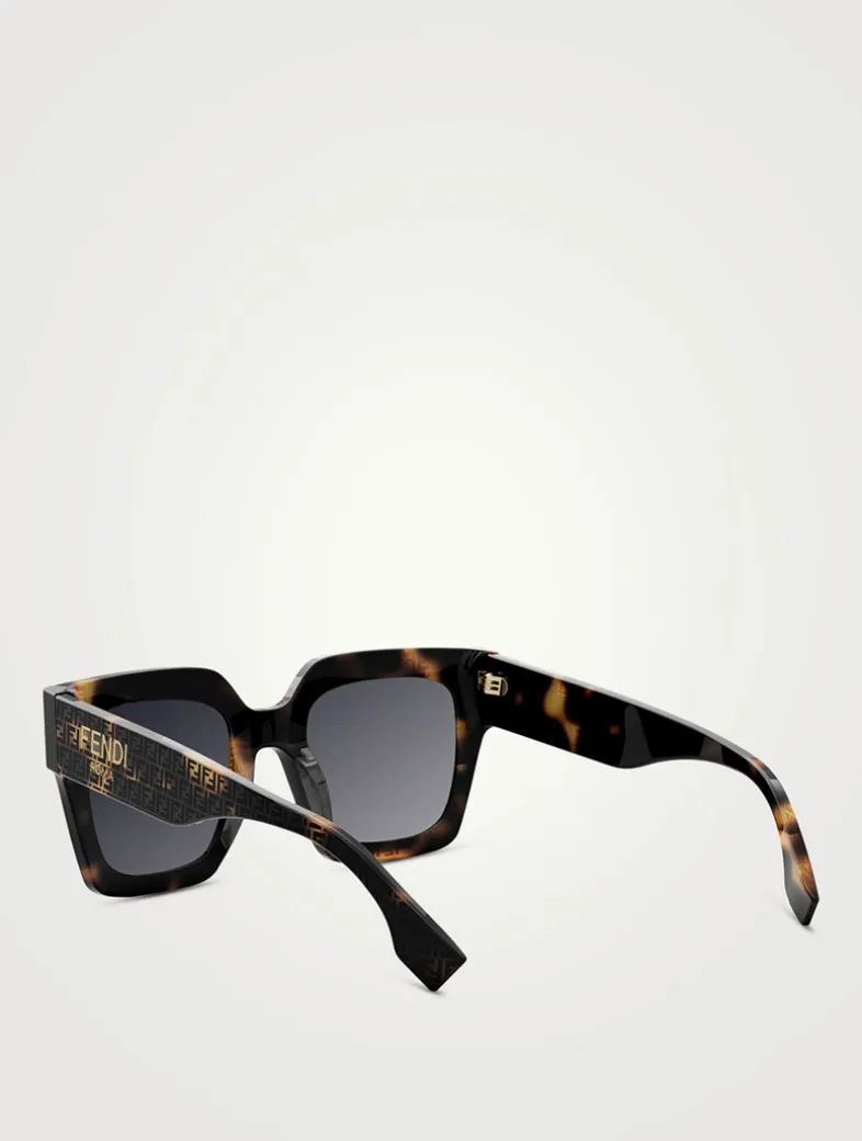 Made in Italy from glossy acetate, these square, oversized FENDI Roma sunglasses feature temples with visible metal core and laser etched FF motifs.