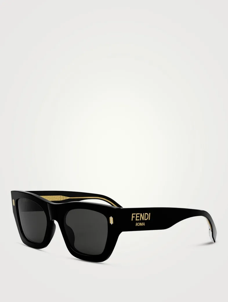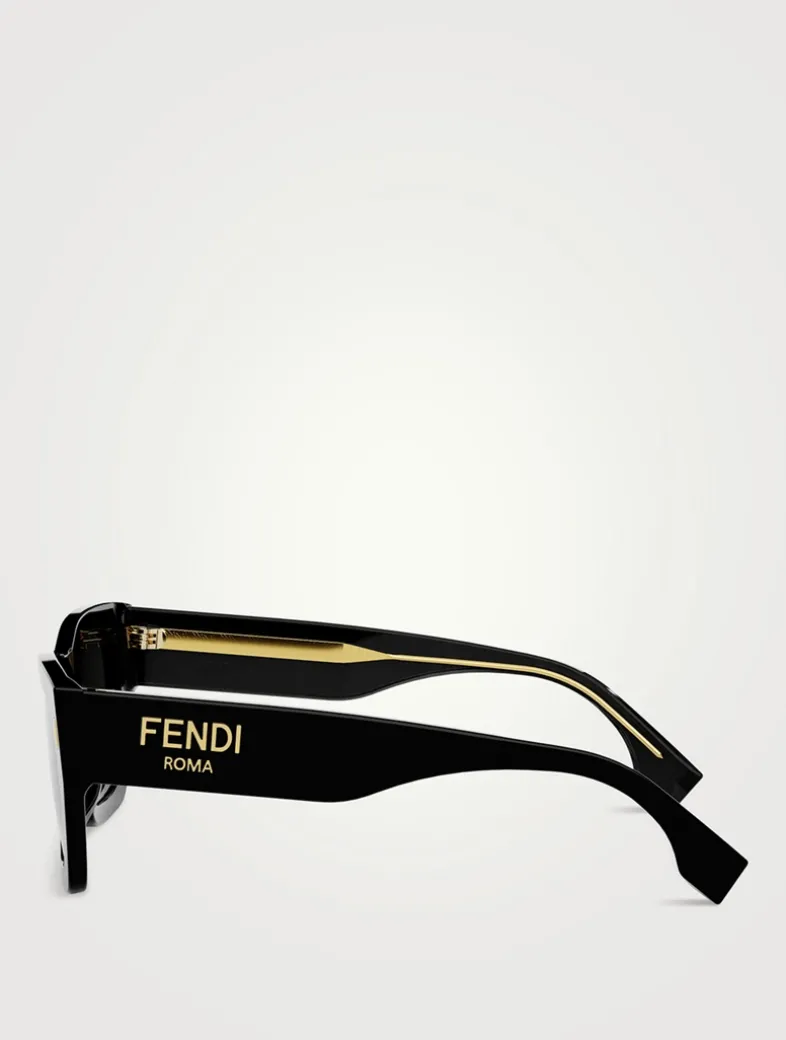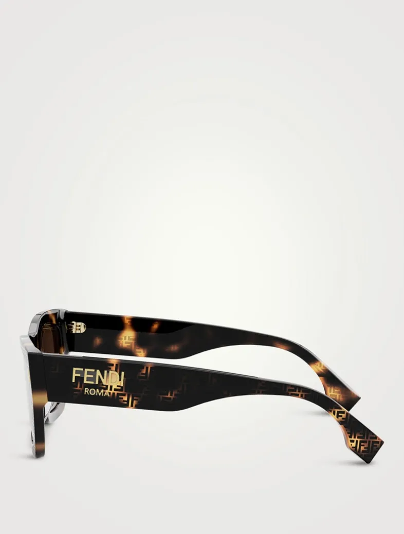 Made in Italy from glossy acetate, these square FENDI Roma sunglasses feature temples with visible metal core and laser etched FF motifs.