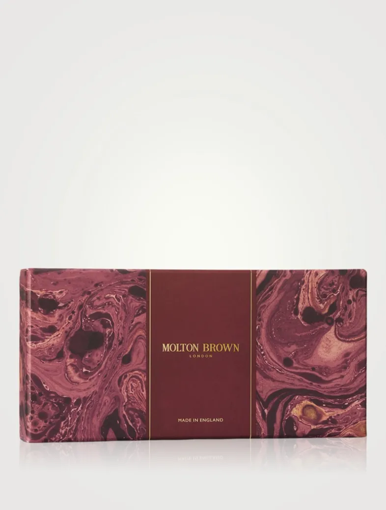 A vibrant trio of Molton Brown’s most popular woody, fruity, and aromatic shower gels in a jewel-inspired design. Slip these scented ornaments into their stocking, hang on the tree for extra sparkle, or add as a refined place setting.