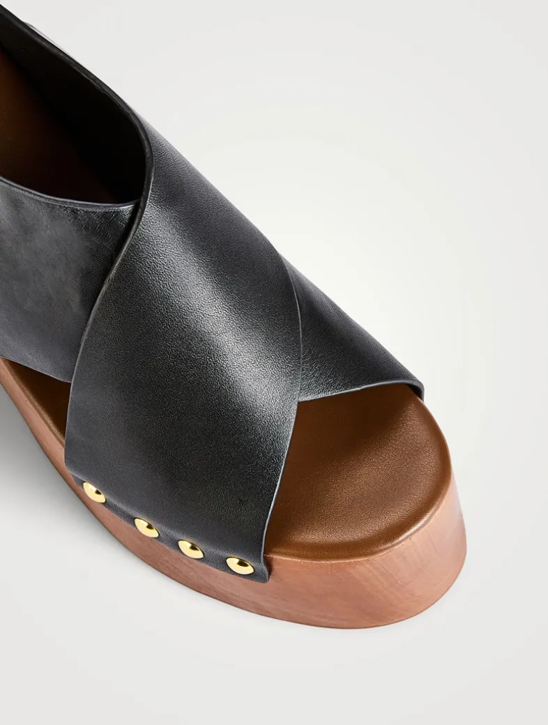 Nodding to vintage-inspired styles, these leather sandals are set on a towering wedge heel with a platform sole. Finished with an adjustable slingback strap and studded trim.