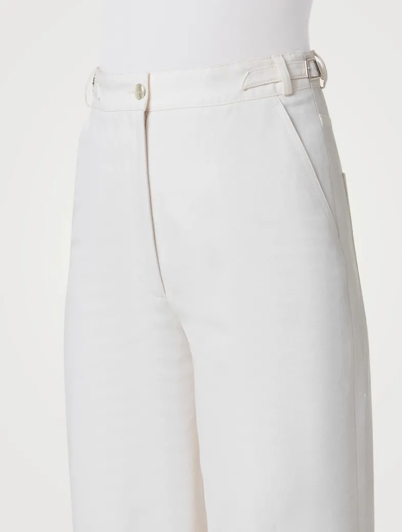 An elegant take on denim, the Finnian from Akris is crafted of stretch cotton. The jeans feature a high-rise, wide-leg silhouette with a clean, trouser-inspired front and classic denim patch pockets at the back.