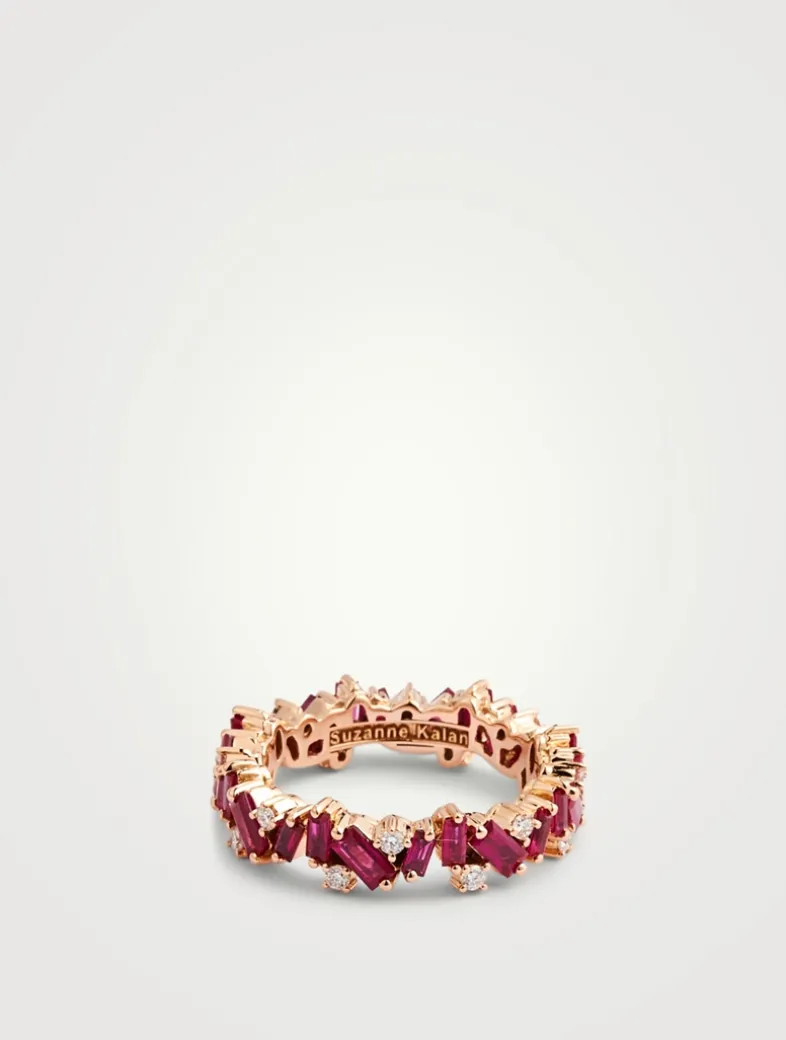 Fireworks 18K Rose Gold Eternity Band With Ruby And Diamonds