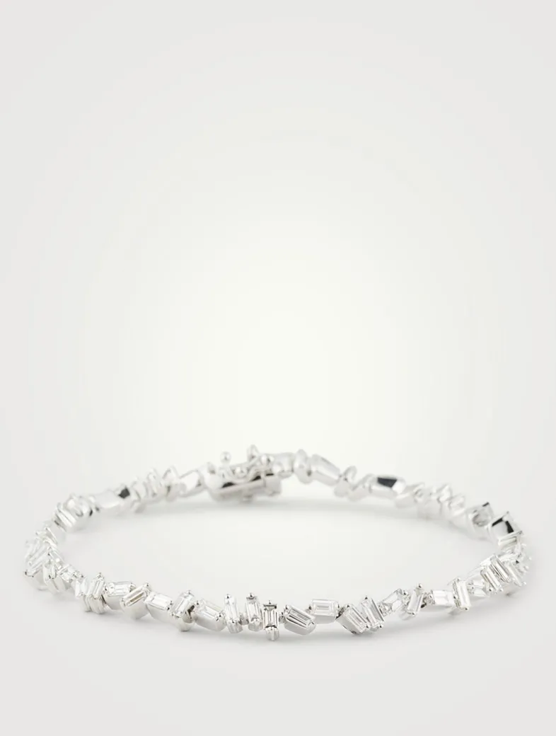 From SUZANNE KALAN’s signature Fireworks collection, this tennis bracelet is set all around with white diamond baguettes.