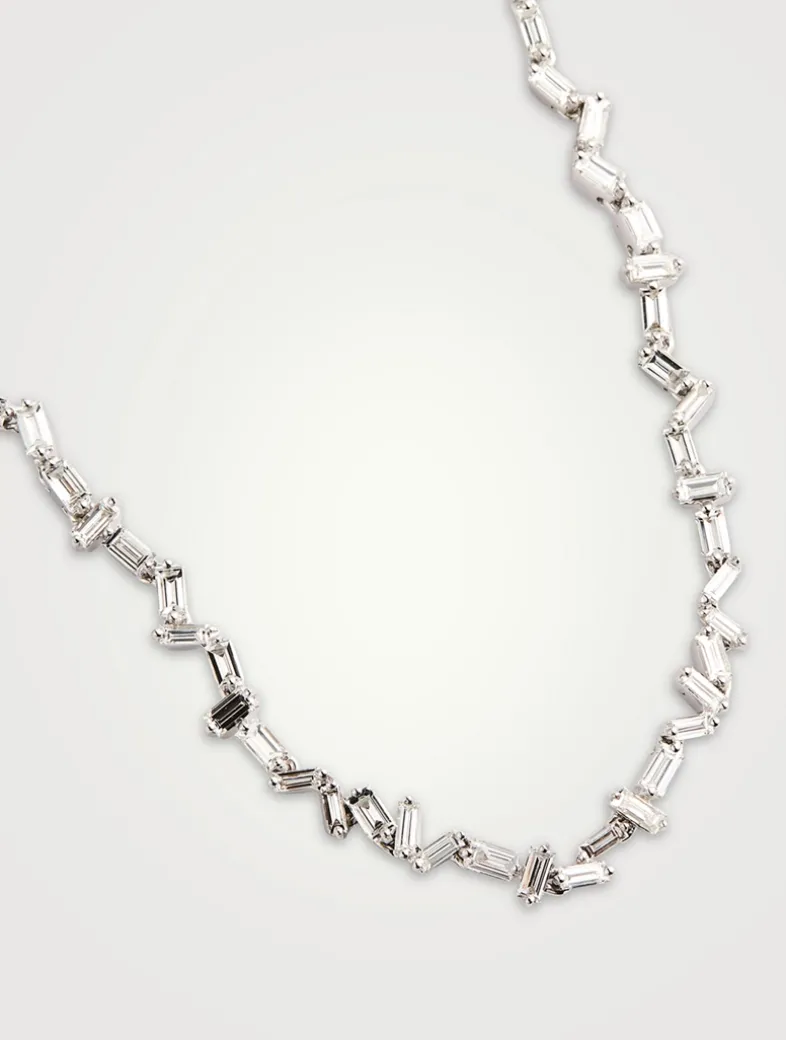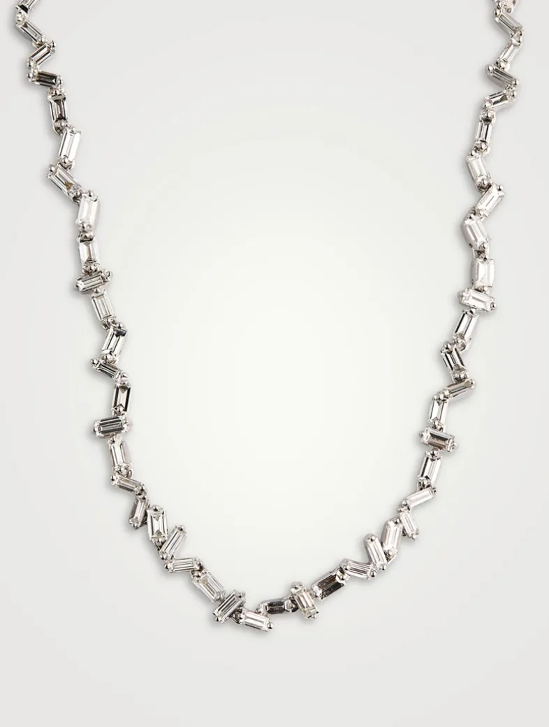 From SUZANNE KALAN’s signature Fireworks collection, this tennis necklace is set with white diamond baguettes in zig-zag Fireworks settings.