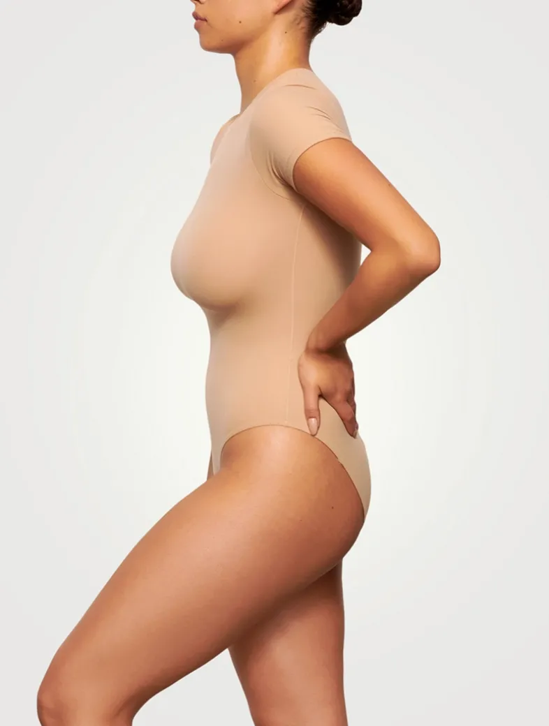 Like your favourite tee, but better! This molds-to-your-body short-sleeve bodysuit features a buttery soft fabric, high crew neckline and brief back for a comfortable fit. Snap closures make it easy to get on and off.