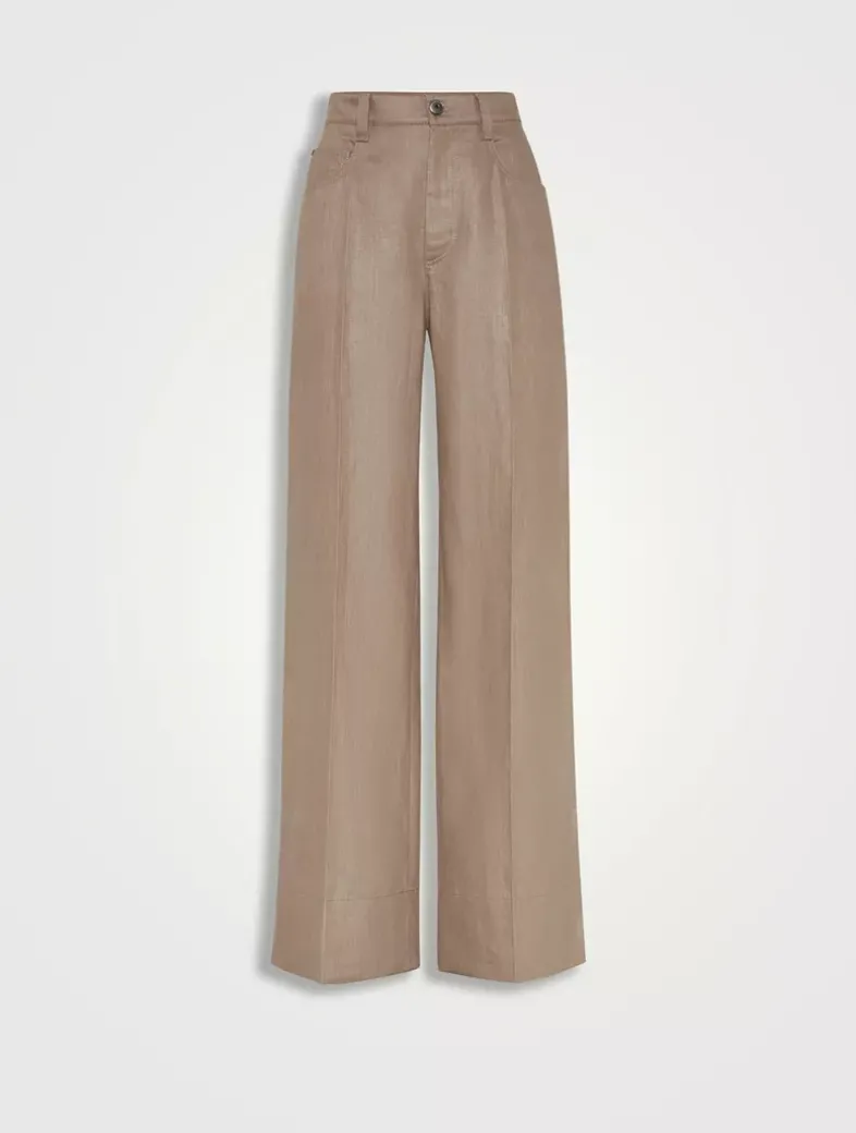 Polished linen twill relaxed five-pocket trousers with monili