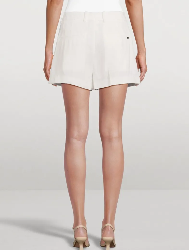 These classic trouser shorts are made in textured viscose cut with a slight flare and a higher rise. Finished with on-seam side pockets and welt pockets at the rear.