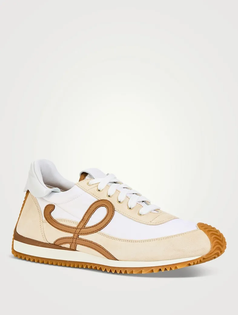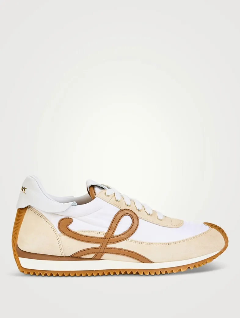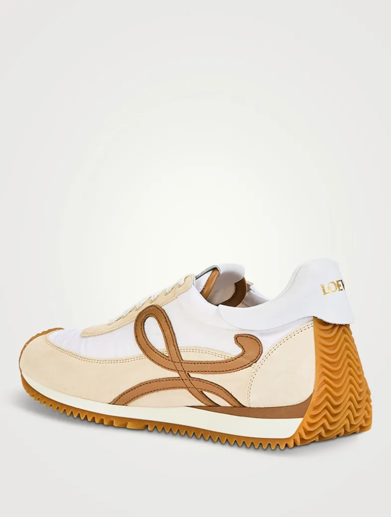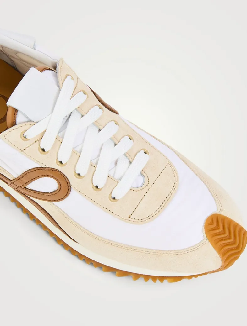 A new version of LOEWE’s iconic low-tops, these lace-up sneaker in nylon and suede feature an updated ultra-flexible and lightweight construction and the signature honey-coloured rubber outsole that extends from the toecap to the back of the heel.