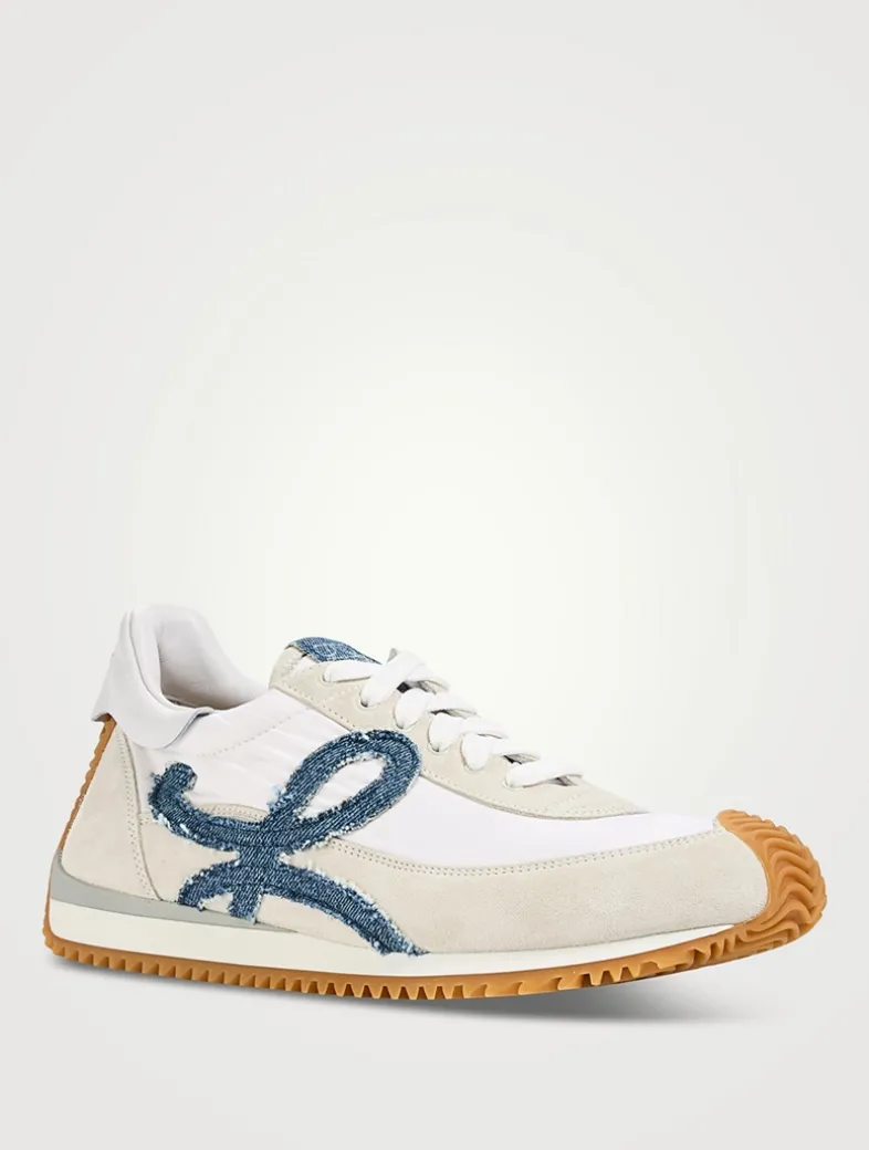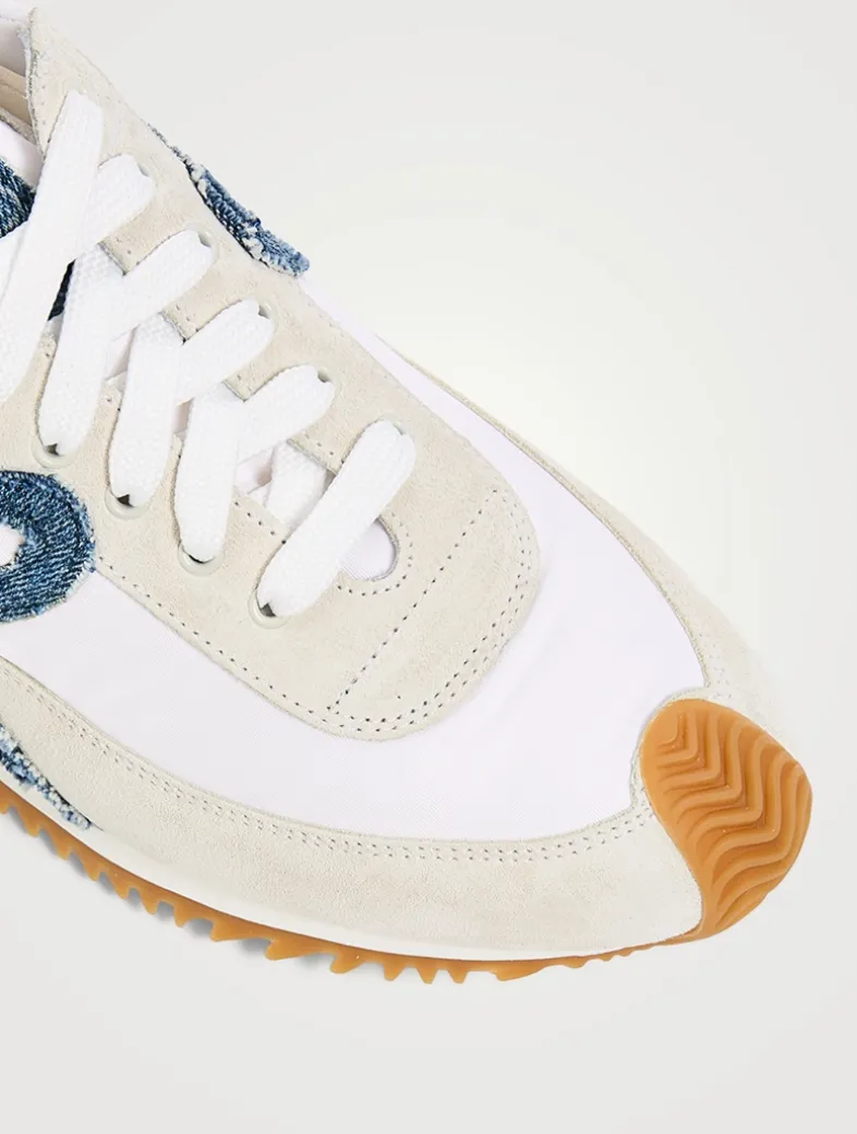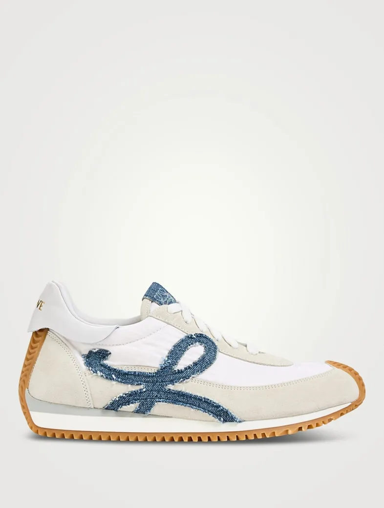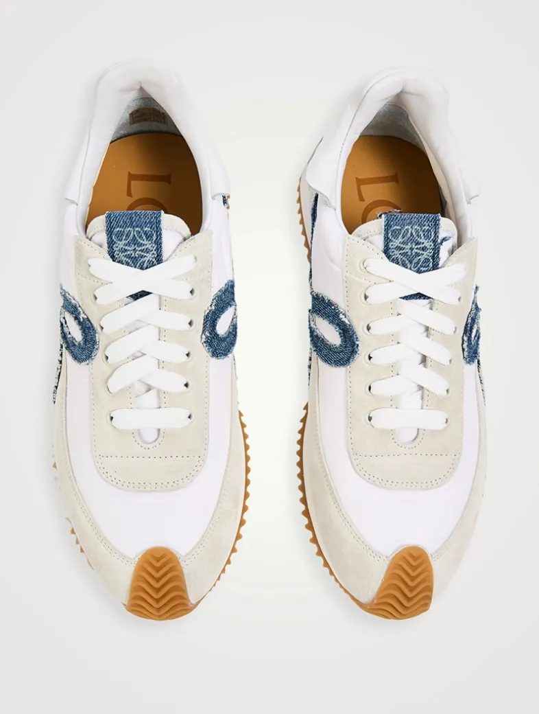 A new version of LOEWE’s iconic low-tops, these lace-up sneakers in nylon and suede feature an updated ultra-flexible and lightweight construction and the signature honey-coloured rubber outsole that extends from the toecap to the back of the heel.