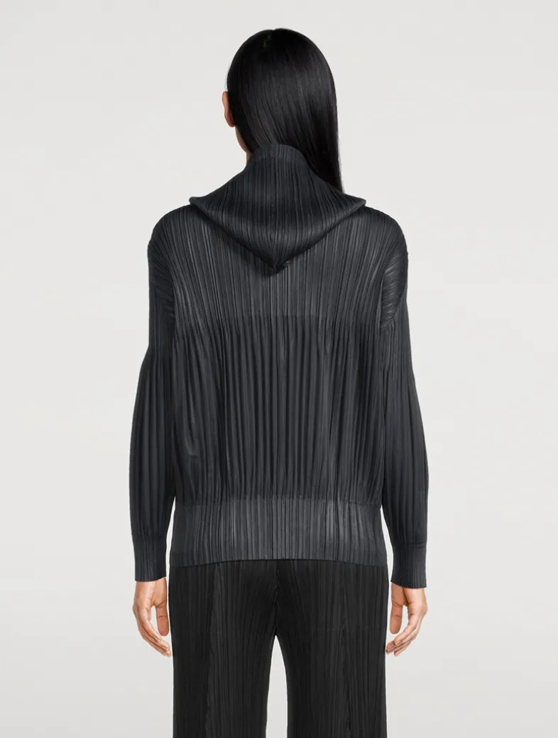 Fluffy Basics is a core series of sporty styles with a release pleat effect and slightly shiny fabric. This long-sleeve hoodie features a relaxed shape and two-way zippered closure.