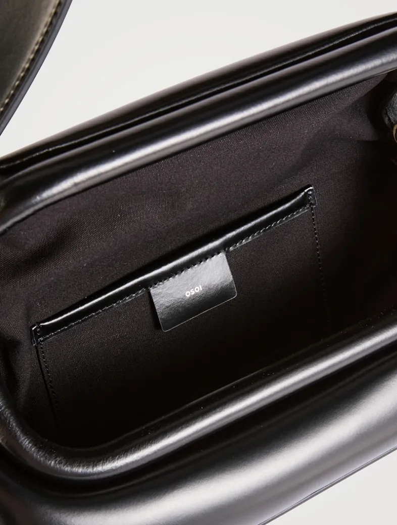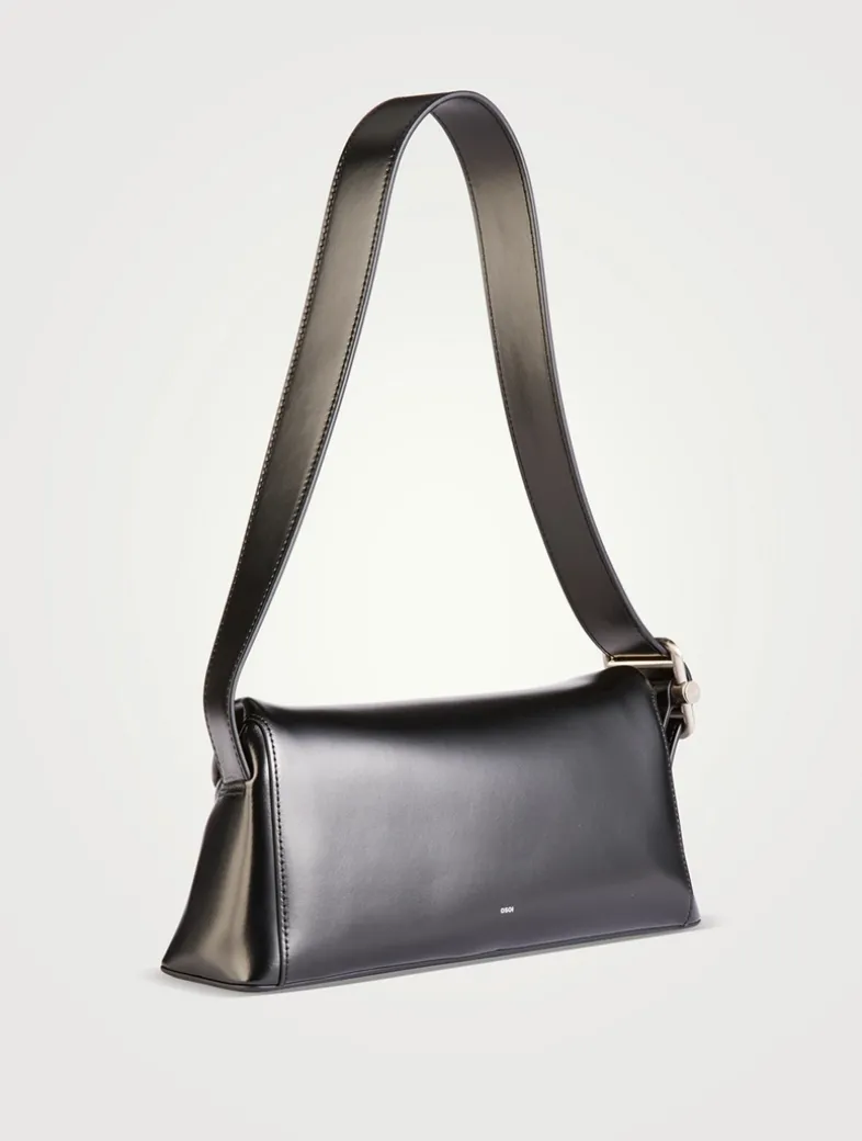 This everyday bag has a unique shape that looks like it is folded using a frame hinge closure. Crafted from leather, it has an adjustable shoulder strap and an inner pocket.