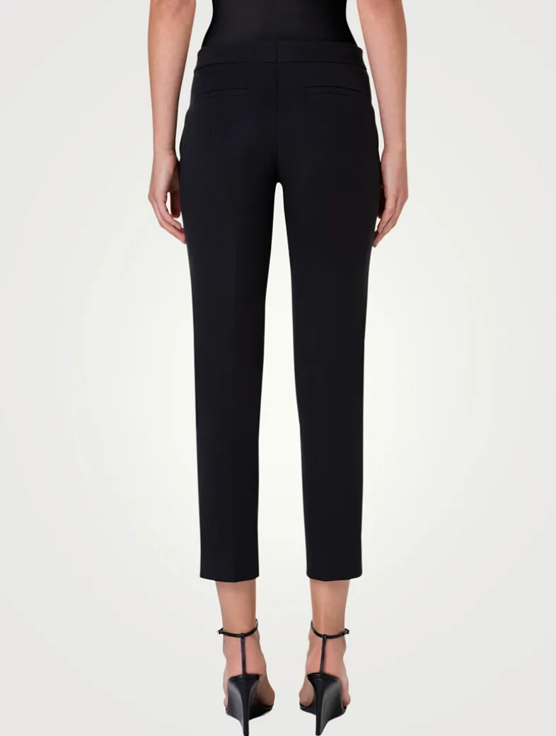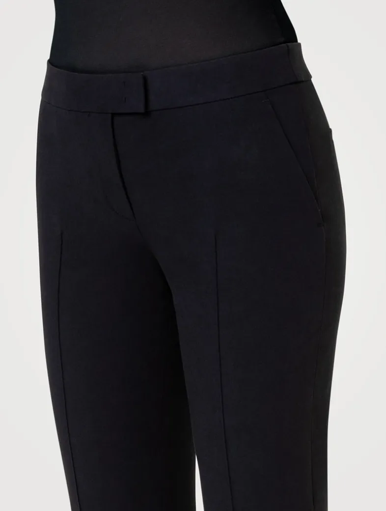 Ankle-length jersey pants in techno stretch fabric with slash pockets at the sides, faux back pockets and front zippered closure.
