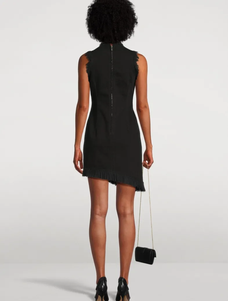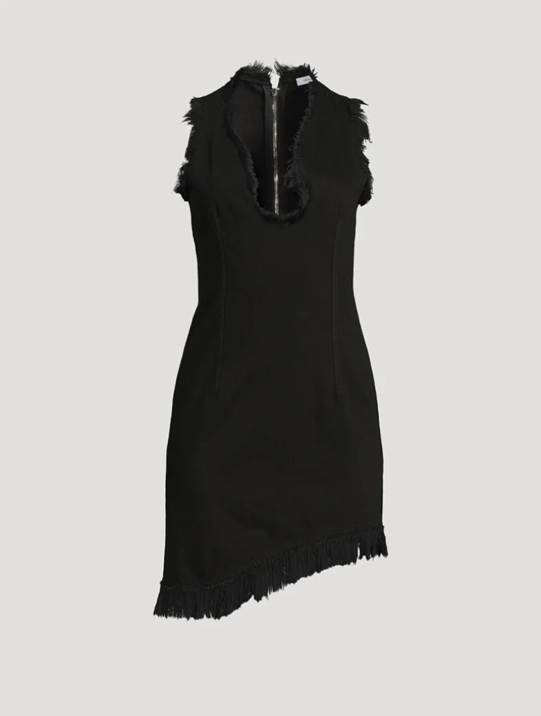Fringed edges give this mini dress a dynamic feel. This figure-hugging piece is crafted from denim, with an asymmetrical cut that is unmissable. At the back, double seams highlight the sculptural silhouette, with zip fastening.