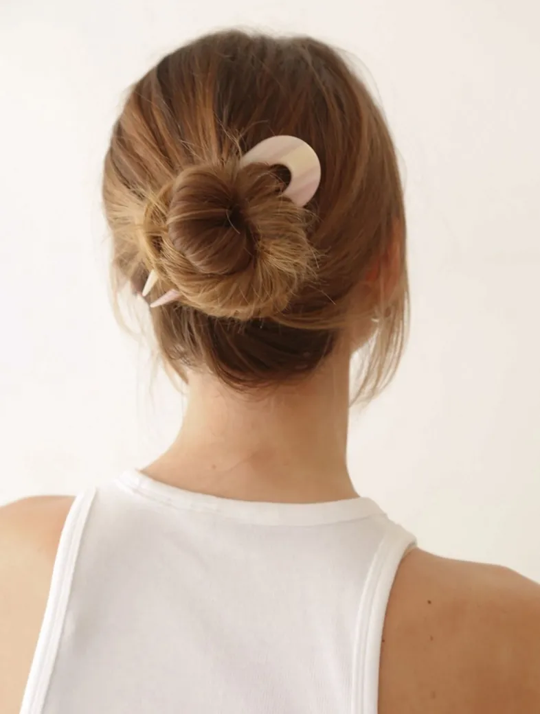 The French Pin is a sleek, U-shaped accessory designed to twist and securely hold buns or updos with minimal effort.