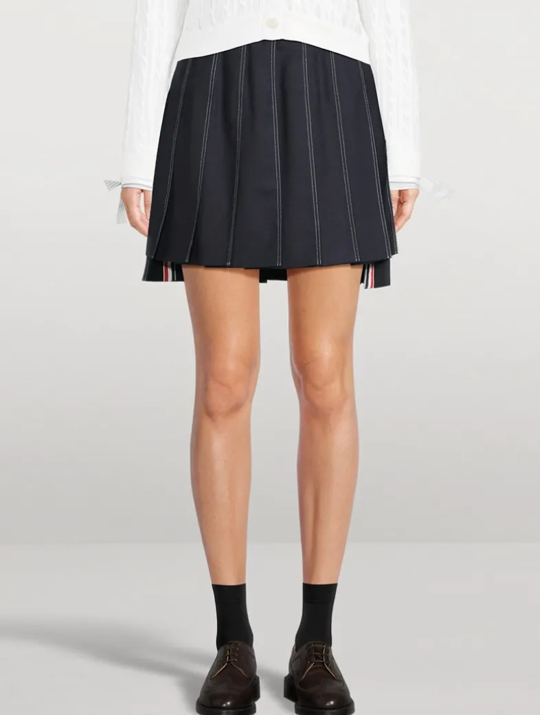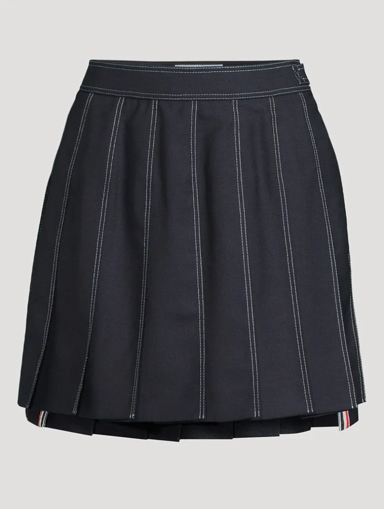 Tailored to perfection, the Fresco Pleated Mini Skirt effortlessly elevates any outfit. A luxurious wool fabric, intricate contrast stitching, and other thoughtfully curated details woven throughout are sure to leave a lasting impression.