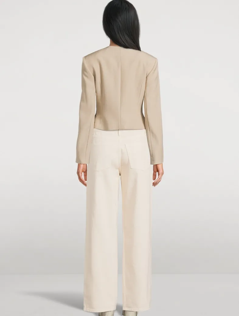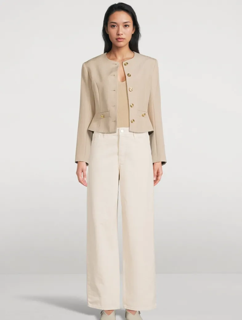 The tailored Frida blazer, with its gold-tone buttons, round collarless neckline, and small front pockets, this single-breasted design is inspired by classic ladylike jackets.
