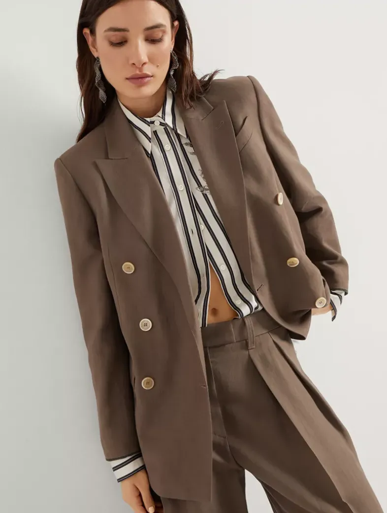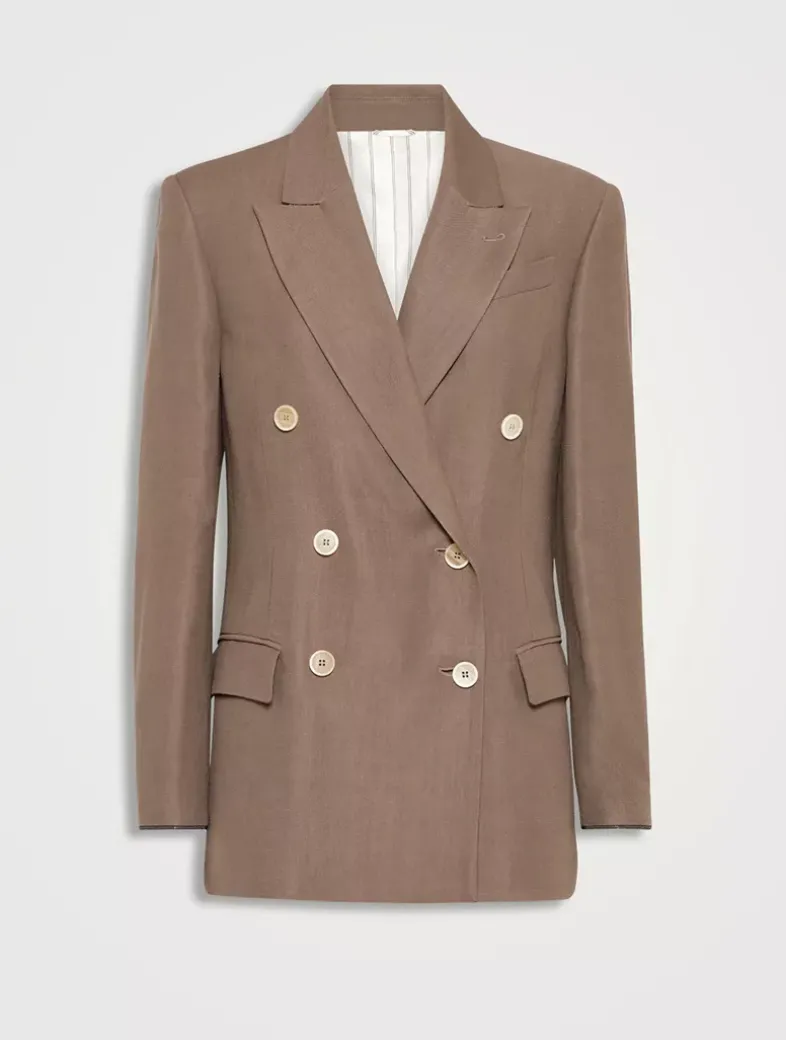 Viscose and linen fluid twill blazer with shiny cuffs