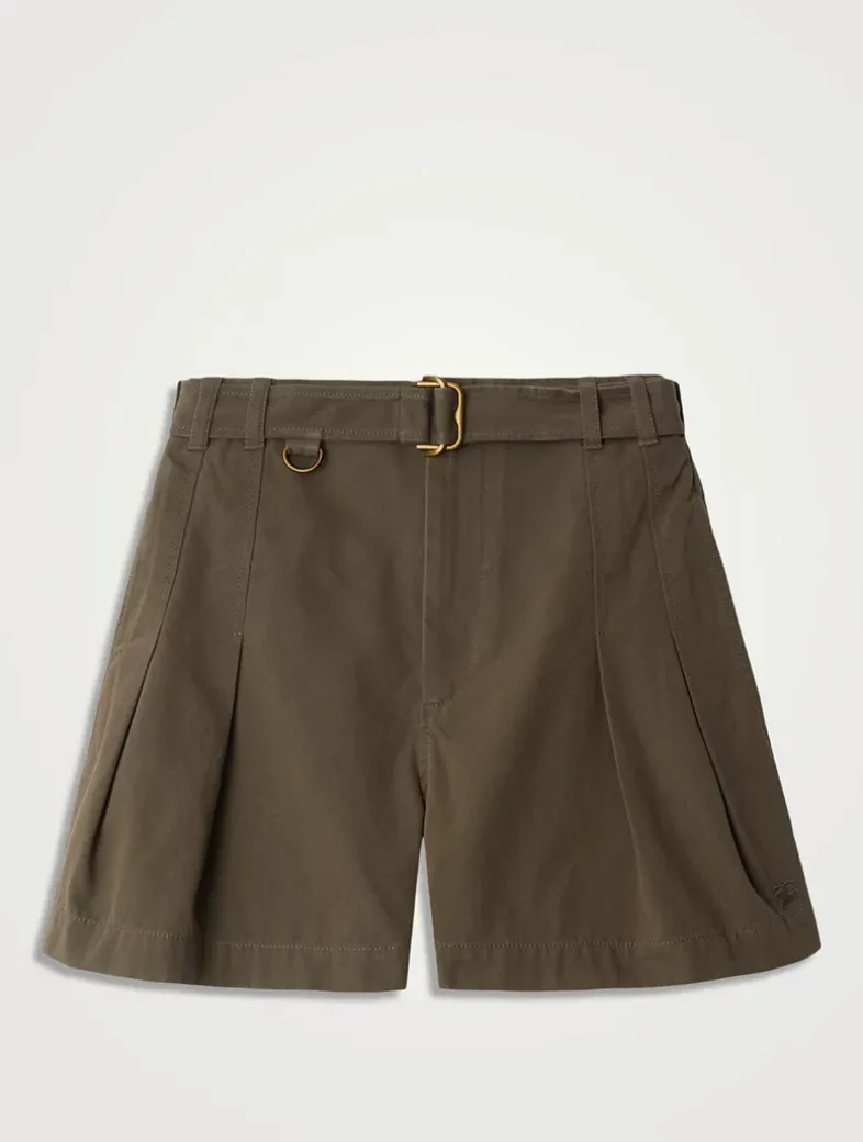 Shorts made from Italian-woven cotton gabardine, tailored to a relaxed fit with double pleats. The design features a matching fabric belt detailed with our signature B buckle and D-ring hardware.
