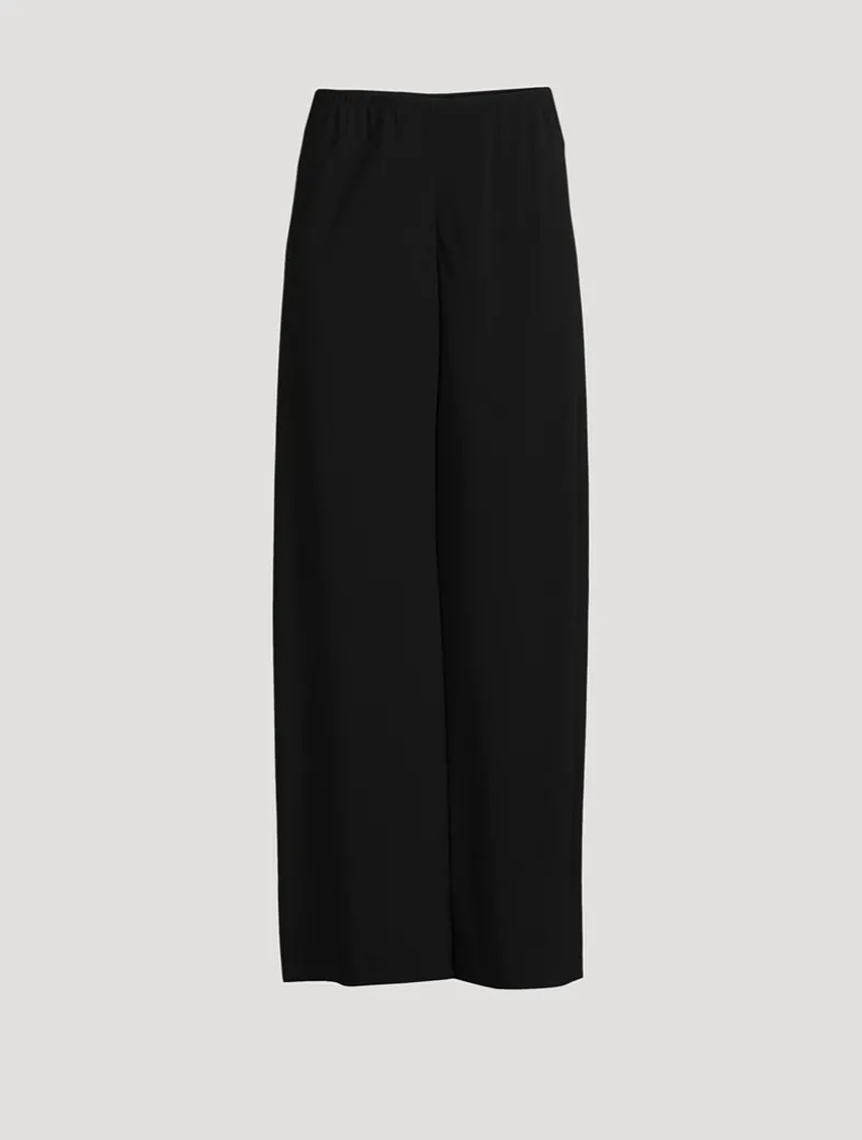 These bias-cut pants are designed with a slim gathered elastic waistband and fluid wide-leg silhouette.