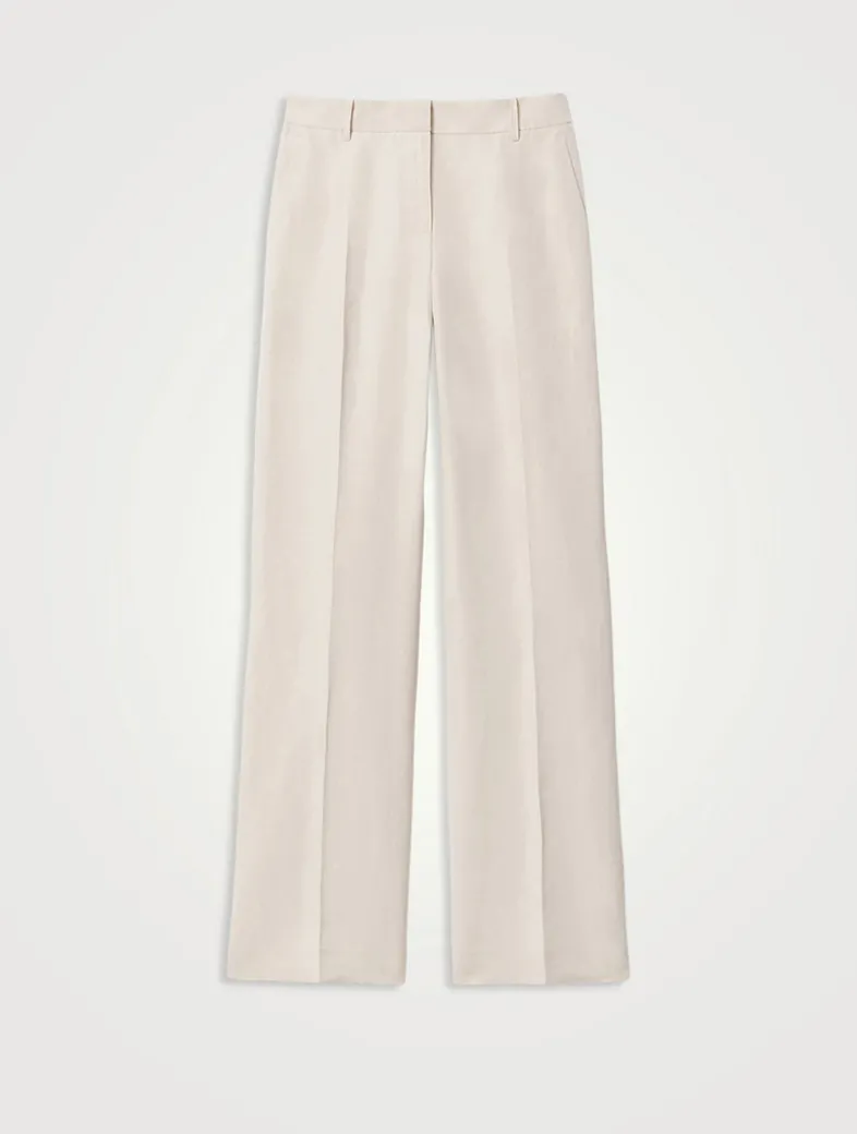 Lafayette 148’s signature Gates pant is rendered in the House’s refined silk-linen fabric favoured for its soft drape and airy-light feel. Expertly cut with an elongating full leg, this pair sits at the waist with a defining high rise and contoured darting for a flawless fit.