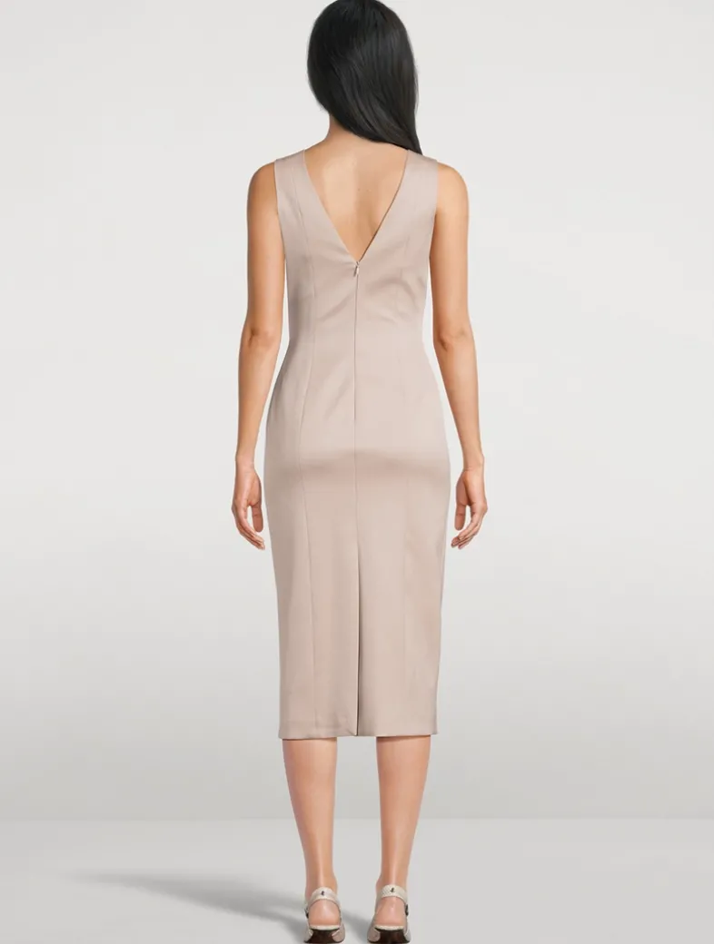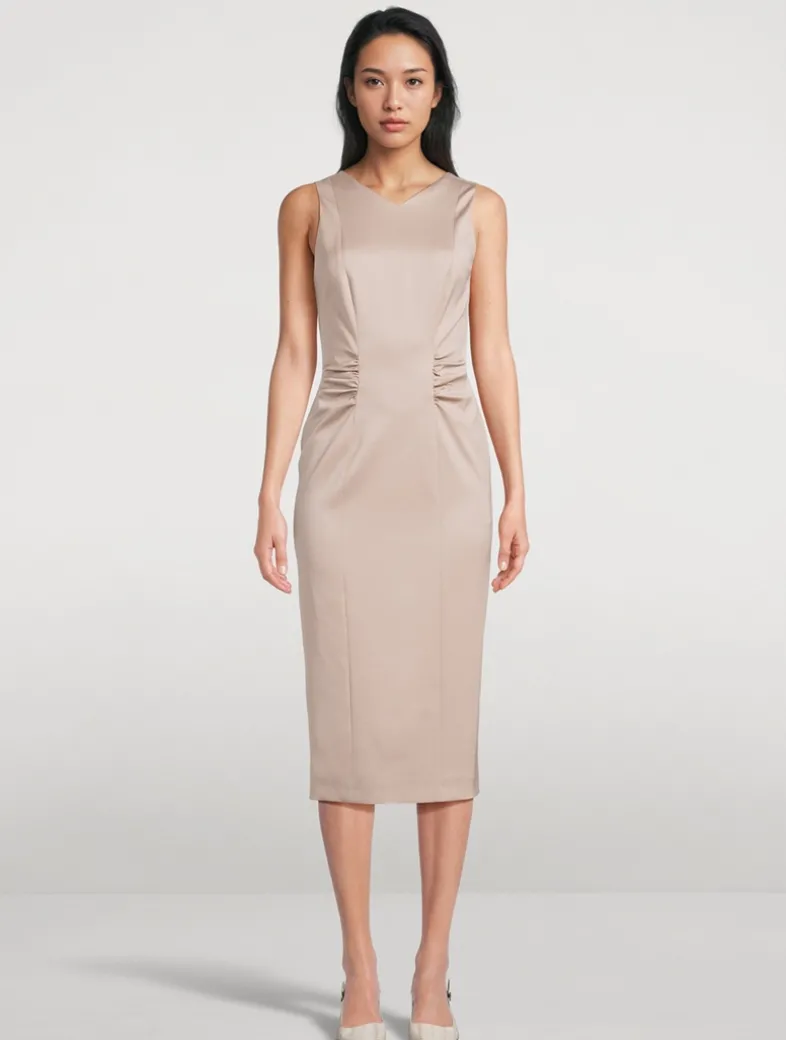Soft gathered detailing defines the waist of this sleeveless dress. Cut to a curve-hugging silhouette, the midi is crafted from virgin wool with a hint of stretch for the perfect fit.