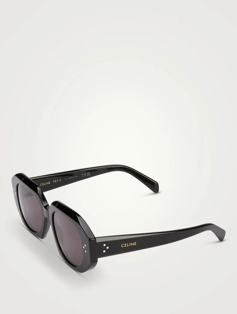 Crafted in Italy from shiny acetate, these geometric sunglasses are adorned with the iconic three-dots and logo lettering at the temples.