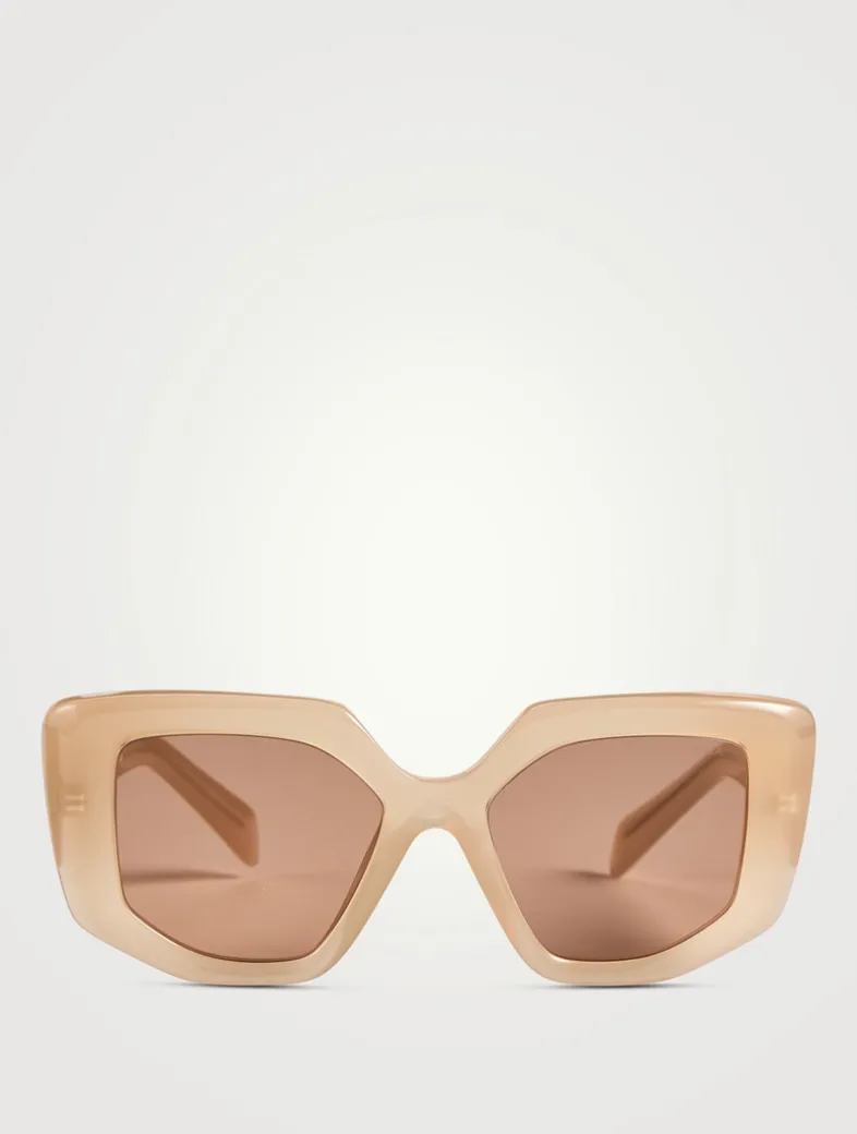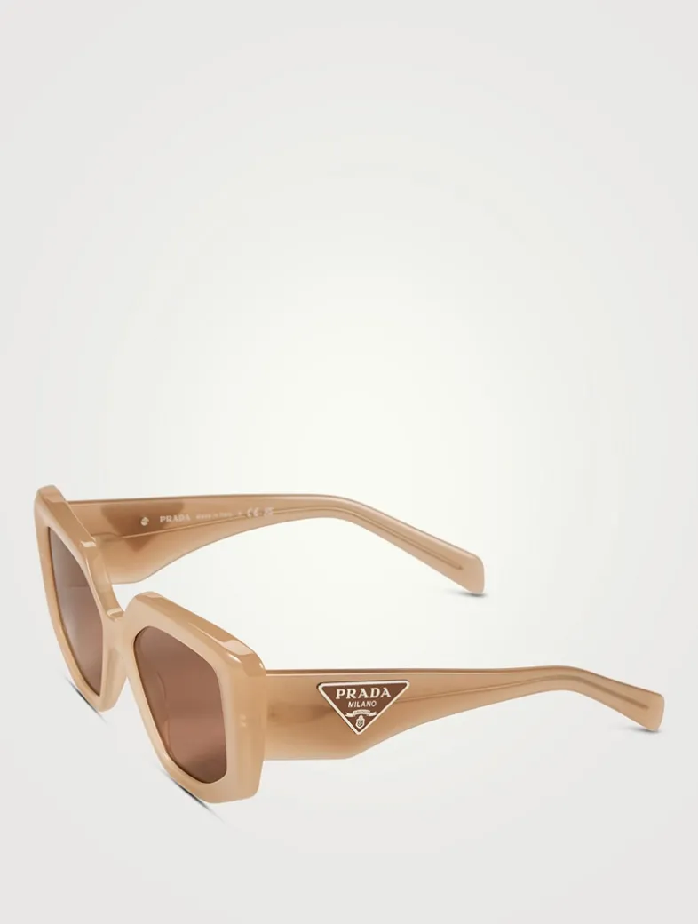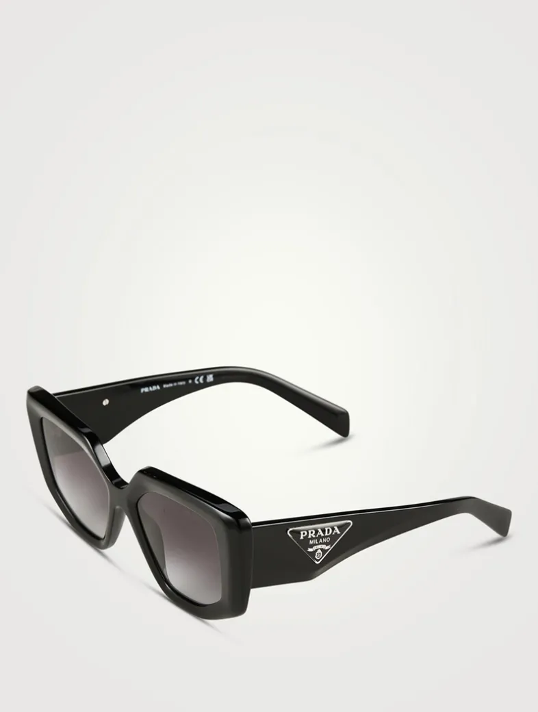 Much more than just a three-sided shape, the triangle has become an integral part of Prada’s legacy. Symbole eyewear highlights the iconic shape and logo in countless different and innovative ways. This style features a bold acetate shape, geometric triangle temples with iconic Prada logos. RX-able.