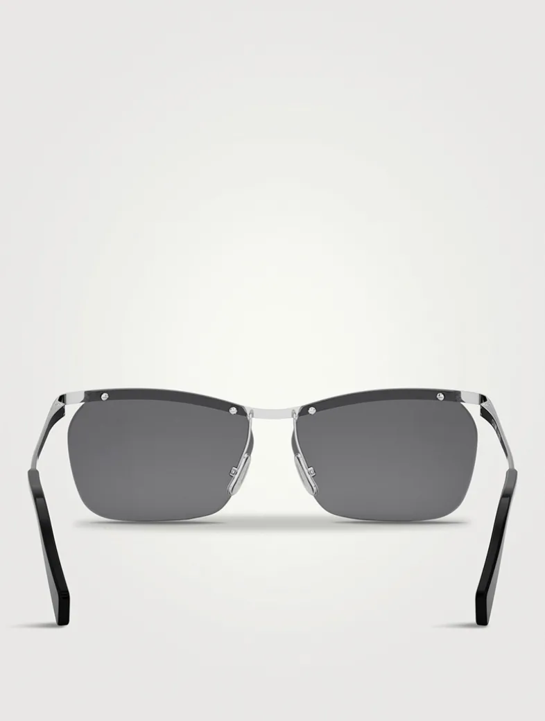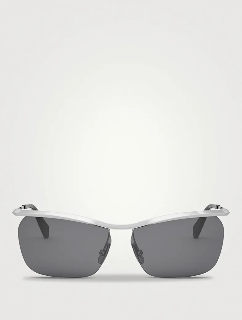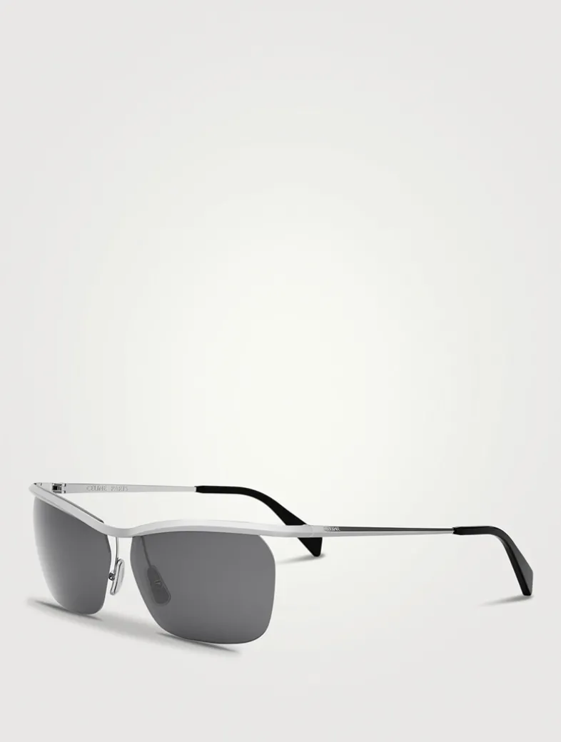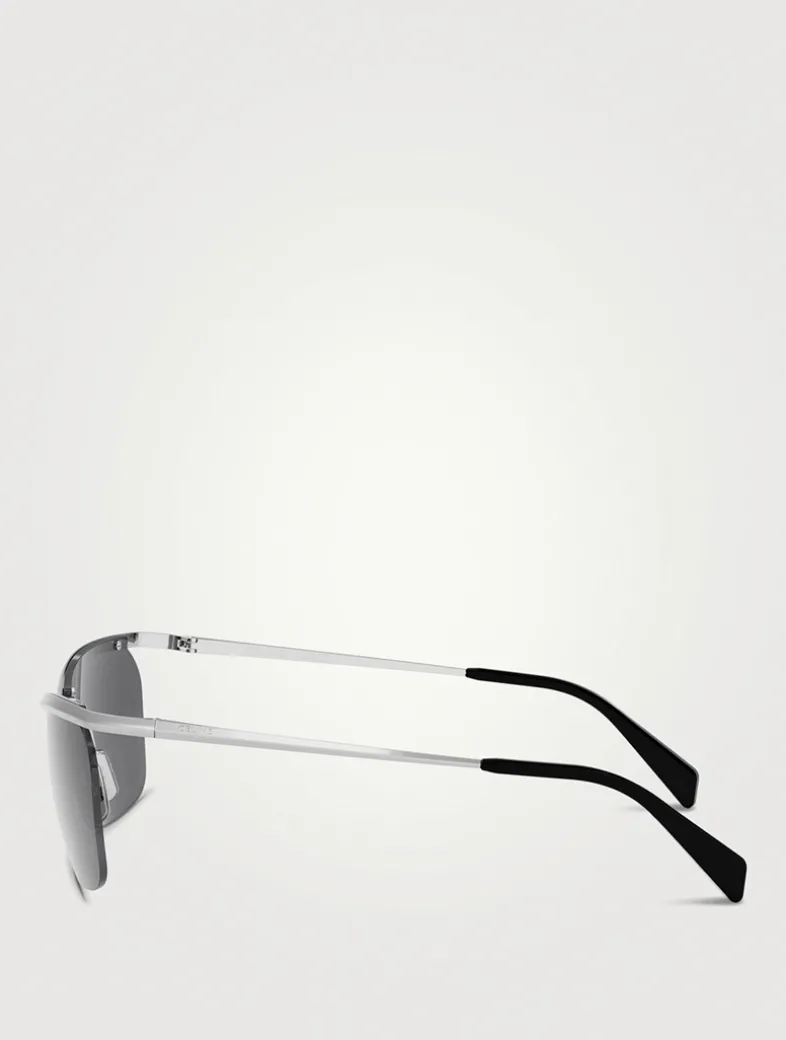 This semi-rimless style is defined by a sleek beveled metal topline. Celine logo engraving subtly brands the temples.