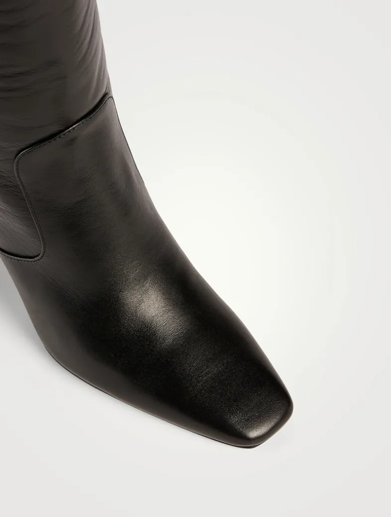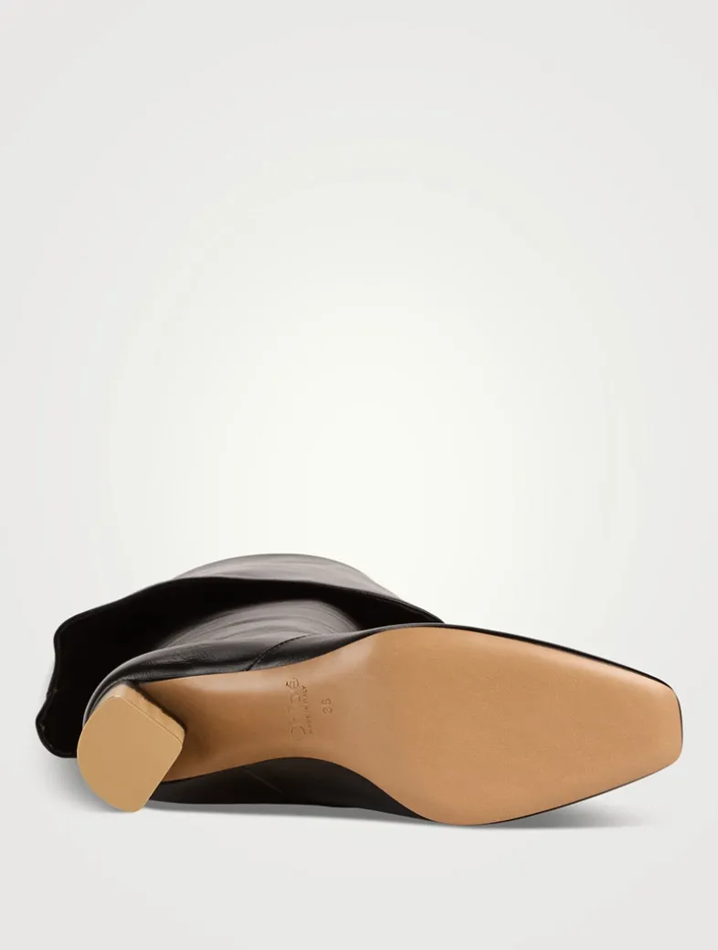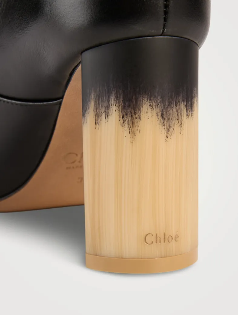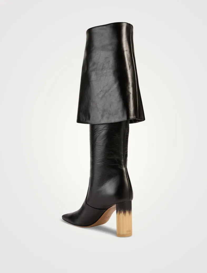 Crafted from rich calfskin, the Georgia heeled boots pair a tall tube leg with a foldover silhouette for an almost over-the-knee effect. A distinctive toe shape and a coloured horn-effect heel create an unexpected finish while the Chloé logo signs the back of these boots.