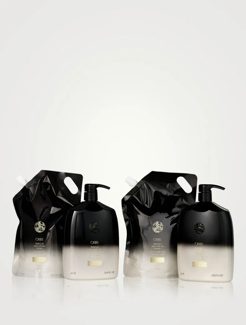Reawaken dry, damaged hair to its glossiest, healthiest prime. The Liter Refill Pouch uses 71% less single-use plastic than the standard bottle while delivering 100% of Oribe’s luxurious formulas. This rejuvenating shampoo that gently cleanses and repairs damage while restoring moisture for more youthful, healthy-looking hair. Formulated with centuries-old healing oils (cypress, argan and maracuja) and Oribe’s Bio-Restorative Complex, this anti-aging shampoo balances the scalp and restores moisture to dry, damaged hair while strengthening cuticles from the inside out.