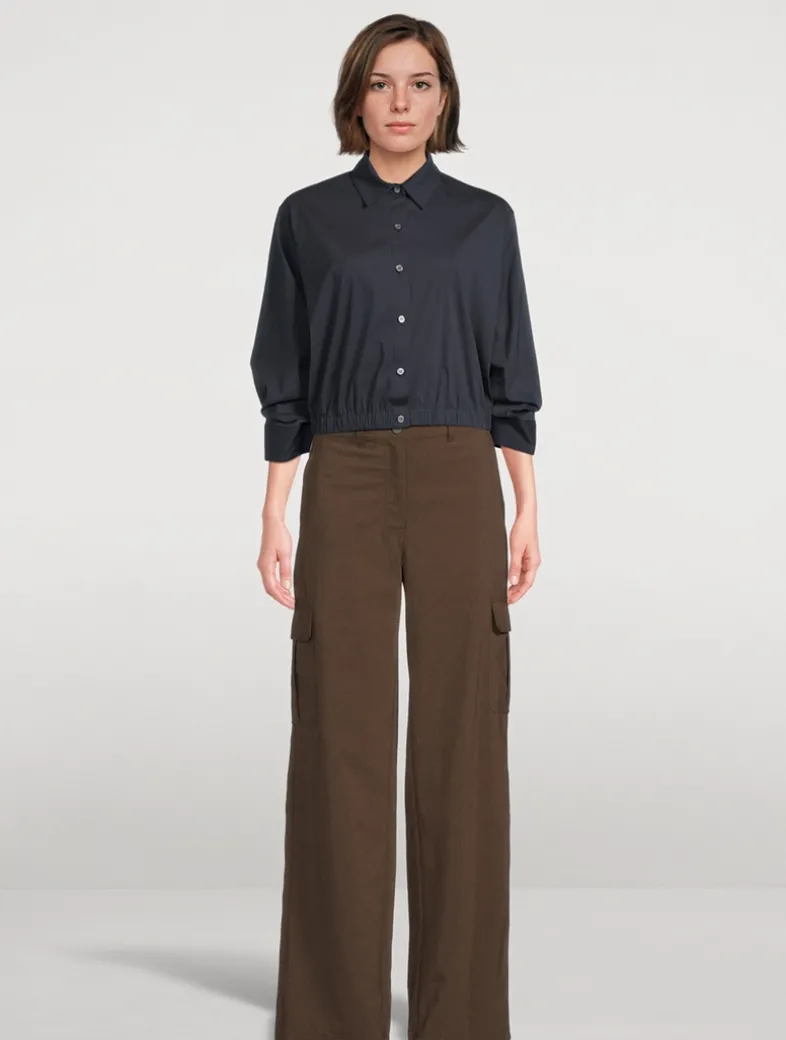 An elevated classic, this button-front shirt is cropped along a straight cut that feels cool yet sophisticated in Theory’s stretch Good Cotton that looks crisp and keeps you comfortable. A pointed collar and elbow-length sleeves detail the menswear-inspired silhouette. Good Cotton is made with extra-long staple, American-grown SUPIMA® cotton, which is recognized as one of the softest and most durable cottons in the world.
