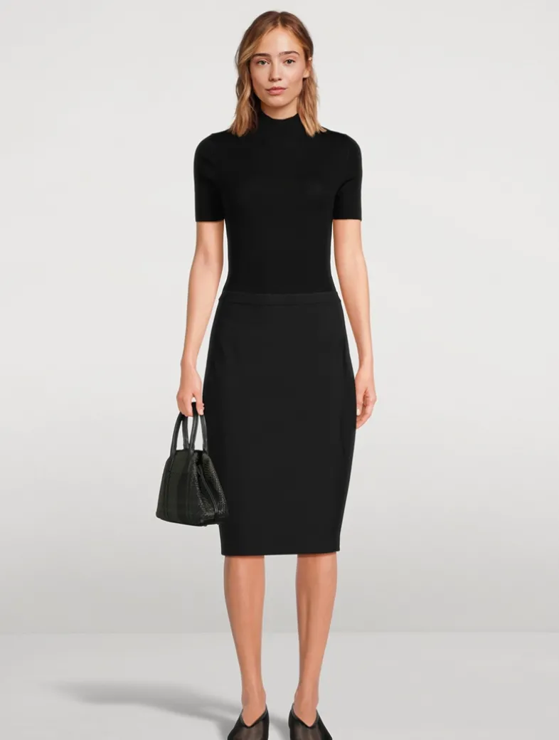 This pencil skirt is tailored to a high-rise waist which flatters with a slim-cut profile. It’s crafted with Good Wool with a hint of stretch for a relaxed feel.