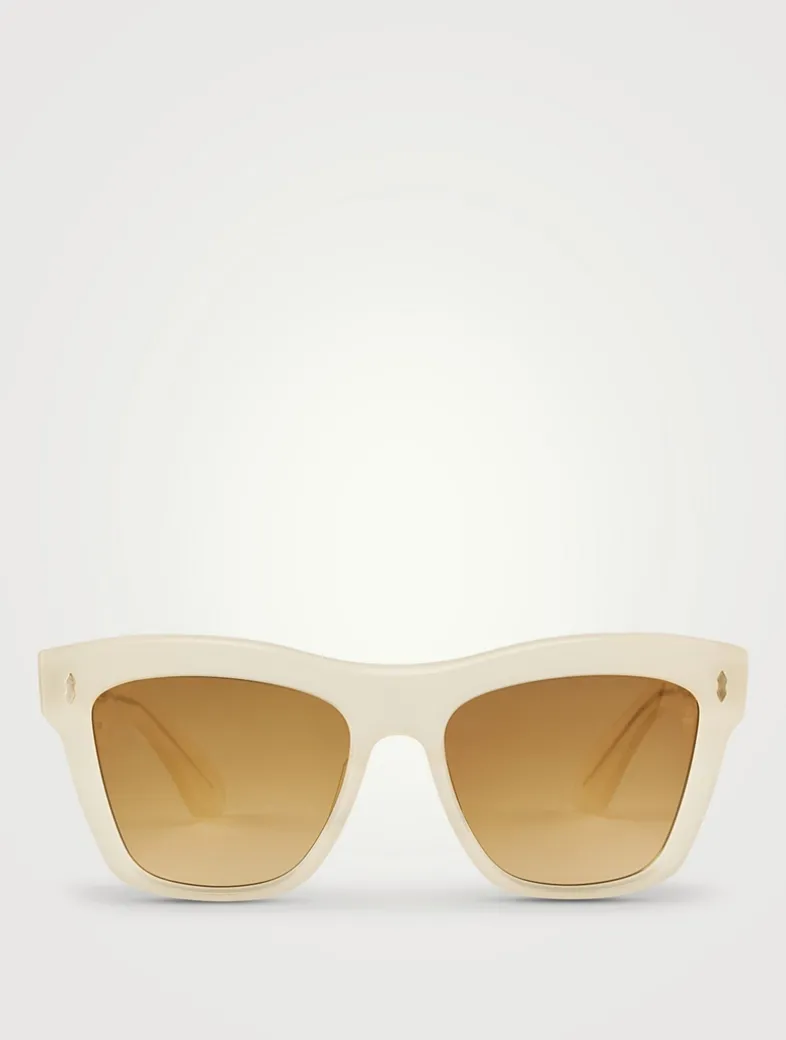 Inspired by New York’s alternative rock scene of the ’80s, these bold square frames have subtly upswept temples with signature details at the temples.