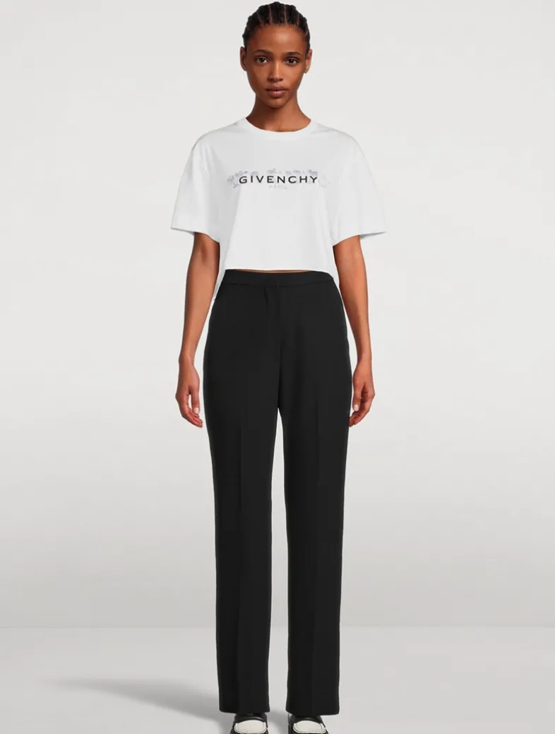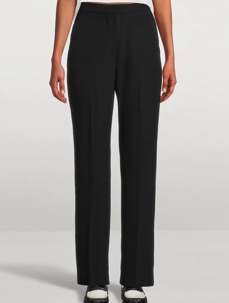These straight-leg tailored trousers are made in Italy from a luxurious grain de poudre wool. They feature a zipped fly, a flat waistband, and side slip pockets.