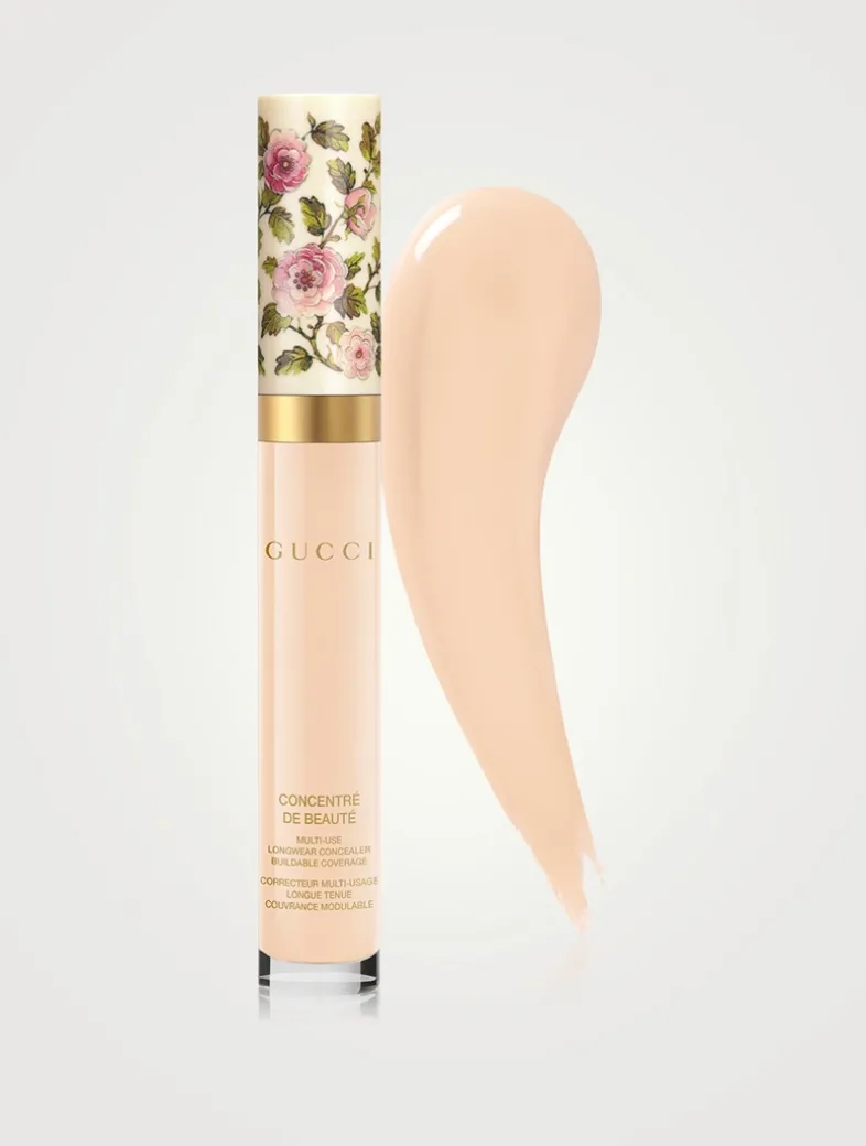 Gucci Concentré De Beauté liquid concealer is the multi-use tool to carry with you – anywhere and everywhere. This lightweight and stretchable texture can be used for targeted and all-over application to conceal, brighten and even the skin. It blends well for a long wear yet breathable, second-skin finish. Powered by skin-caring ingredients, this Gucci concealer is non-drying, non-marking, non-creasing and delivers soothing, hydrating and smoothing properties. Skin and eye bags look smoothed over time. Available in 40 shades.