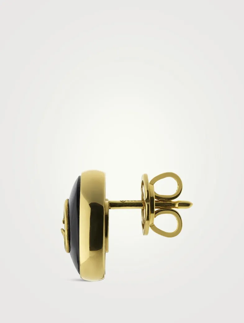 For pierced ears, this pair of stud earrings features the signature Interlocking G logo in precious black onyx stone.