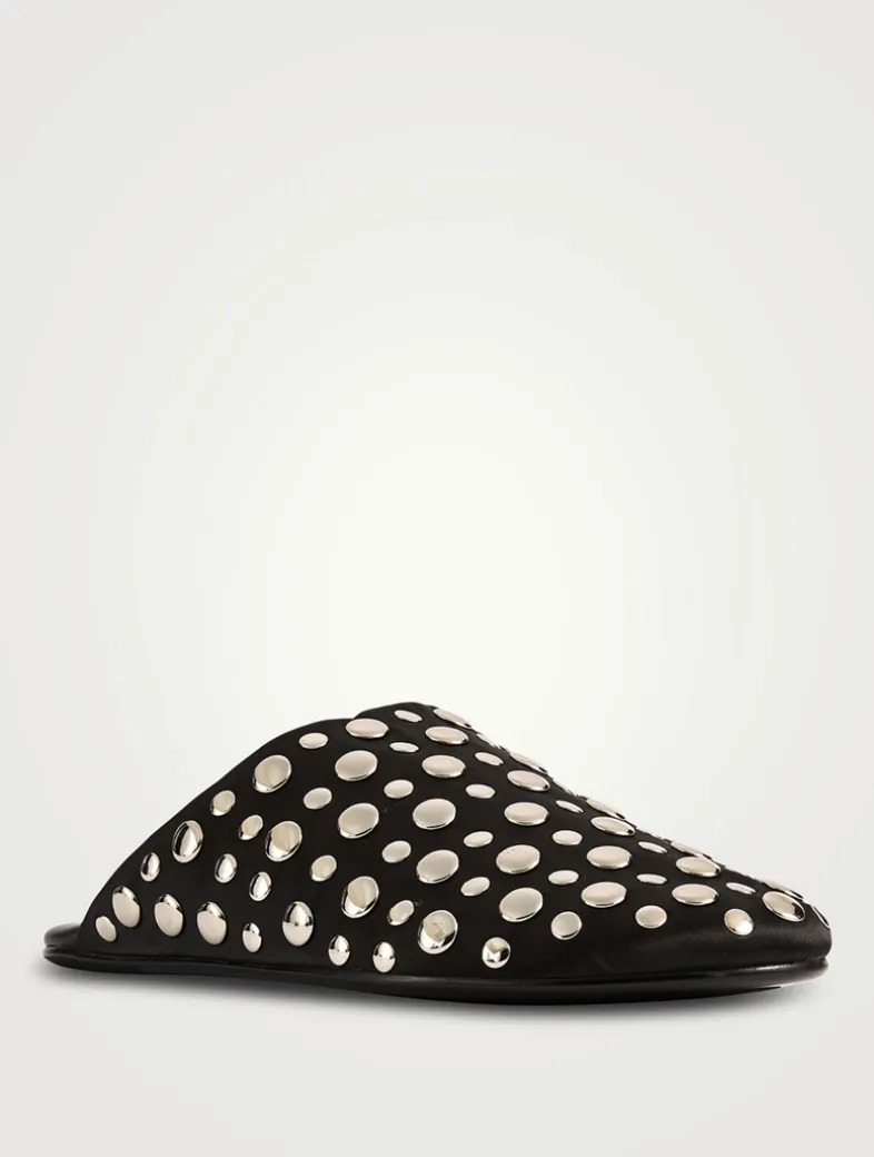Flattened studs adorn these round-toe flats crafted from rich leather.