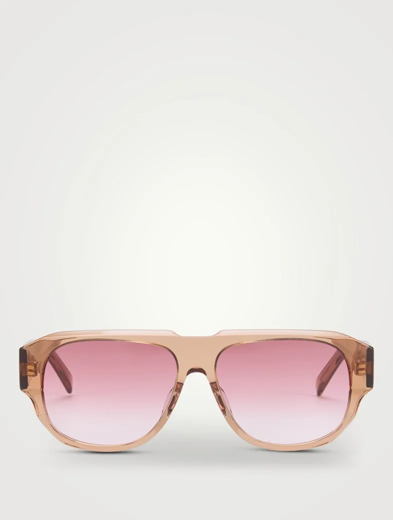 These sunglasses are a modern interpretation of the aviator shape. Givenchy signature on both temples.