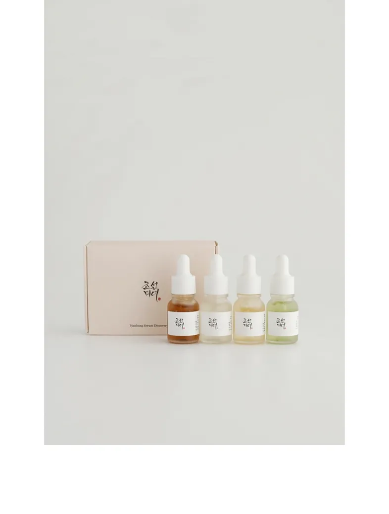 This is a 10 ml mini-size set with four types of serums so that you can choose to use or layer them according to your skin type or skin issues.