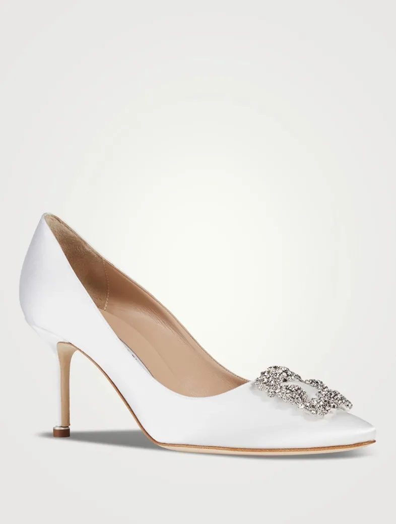 These almond-toe pumps with a stiletto mid heel are crafted in Italy from luscious satin. Adorned with Manolo Blahnik’s iconic crystal-encrusted buckle, the court shoes were inspired by Napoleon I, Josephine and Pauline Bonaparte.