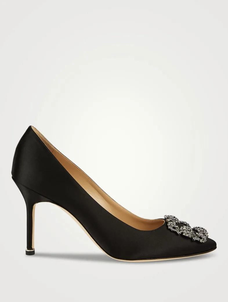 These almond-toe pumps with a stiletto heel are crafted in Italy from luscious satin. Adorned with Manolo Blahnik’s iconic crystal-encrusted buckle, the court shoes were inspired by Napoleon I, Josephine and Pauline Bonaparte.
